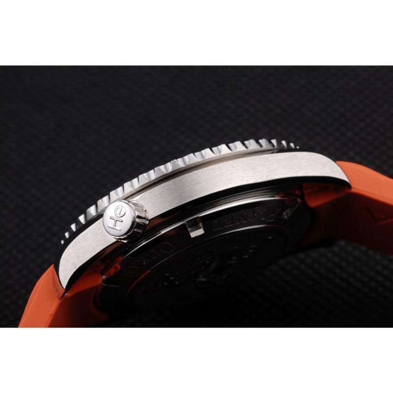Bezel:orange émaillée brossé lunette cutwork en acier inoxydable avec des marqueurs minute lumineux