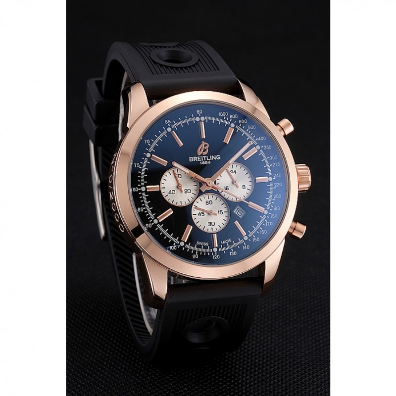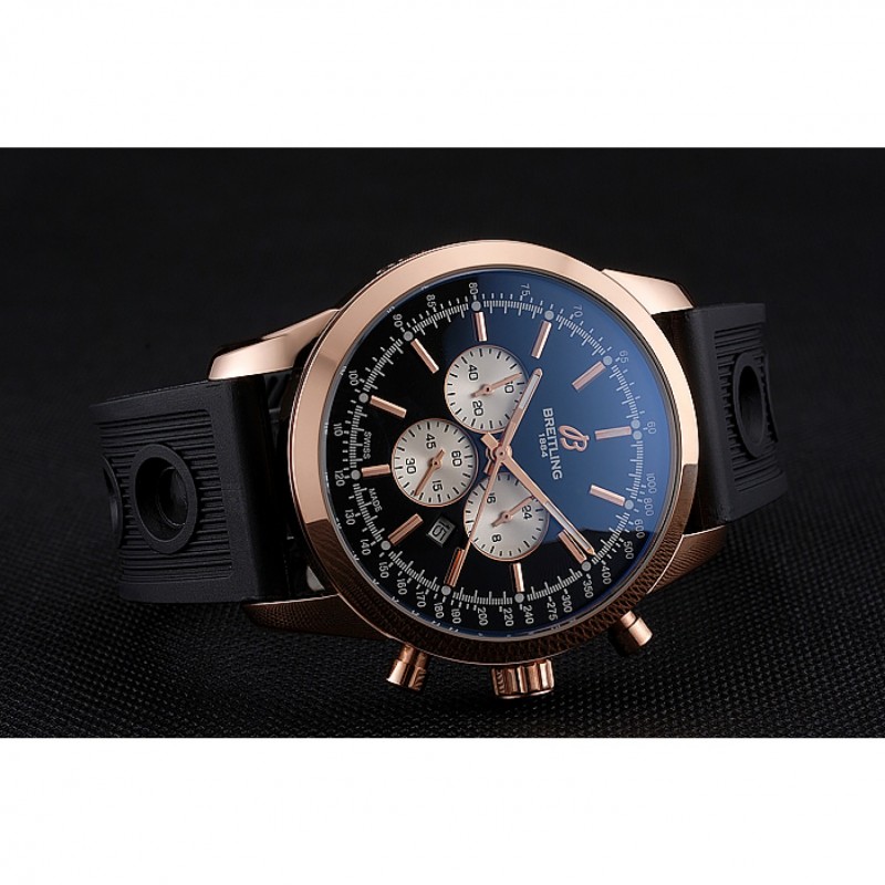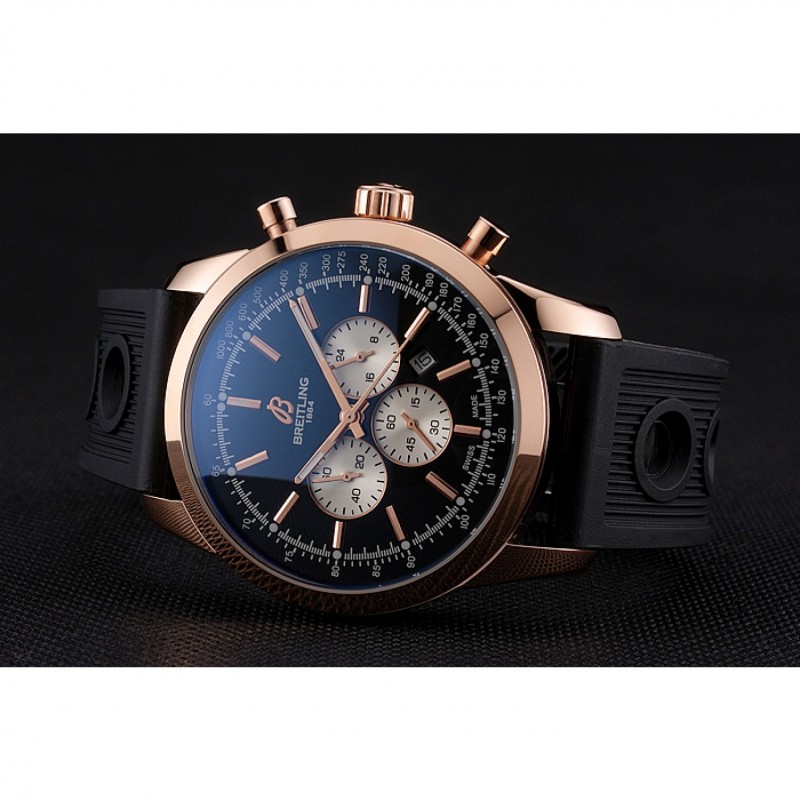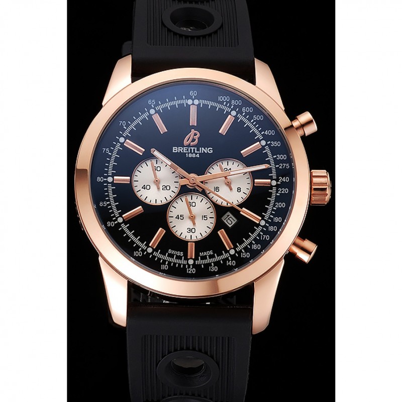 Bracelet :bracelet en caoutchouc noir avec logo Breitling argent gravé plaqué fermoir crochet-boucle