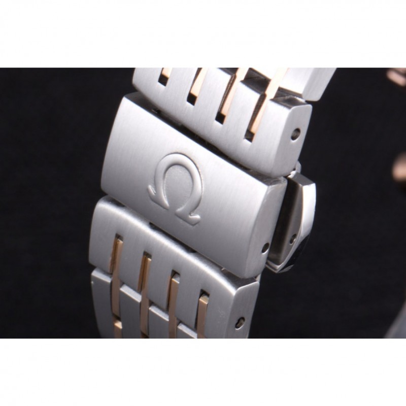 Bracelet:brossé et 18k or rose plaqué bracelet lien avec le logo Omega fermoir à bouton-libération gravé