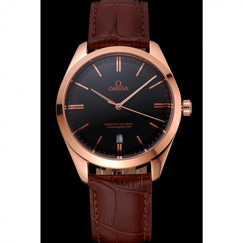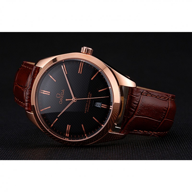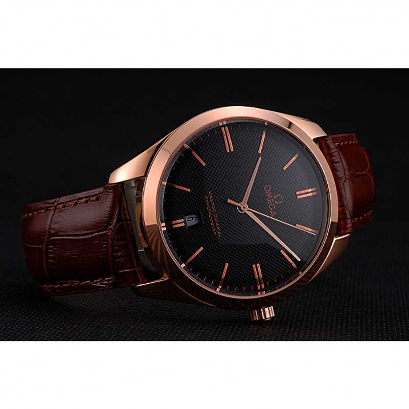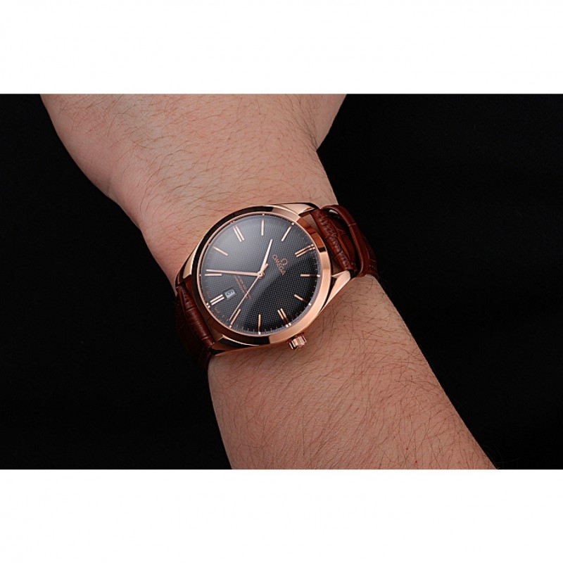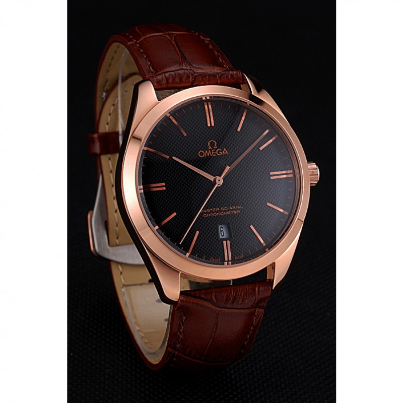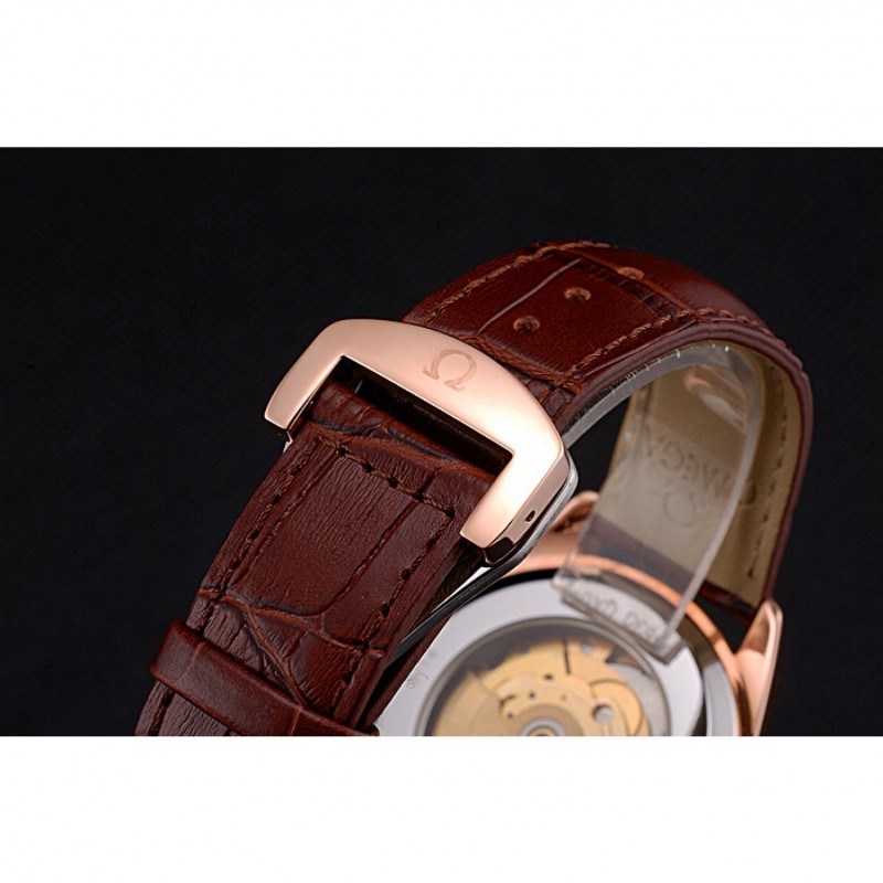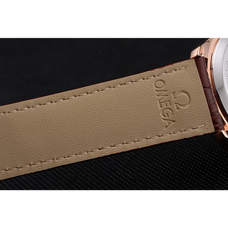 Bracelet:logo et la chaleur Omega estampé crocodile brun bracelet en cuir avec Omega logo 18k gravé en or rose plaqué fermoir crochet