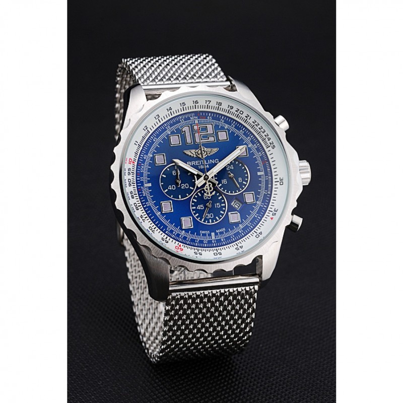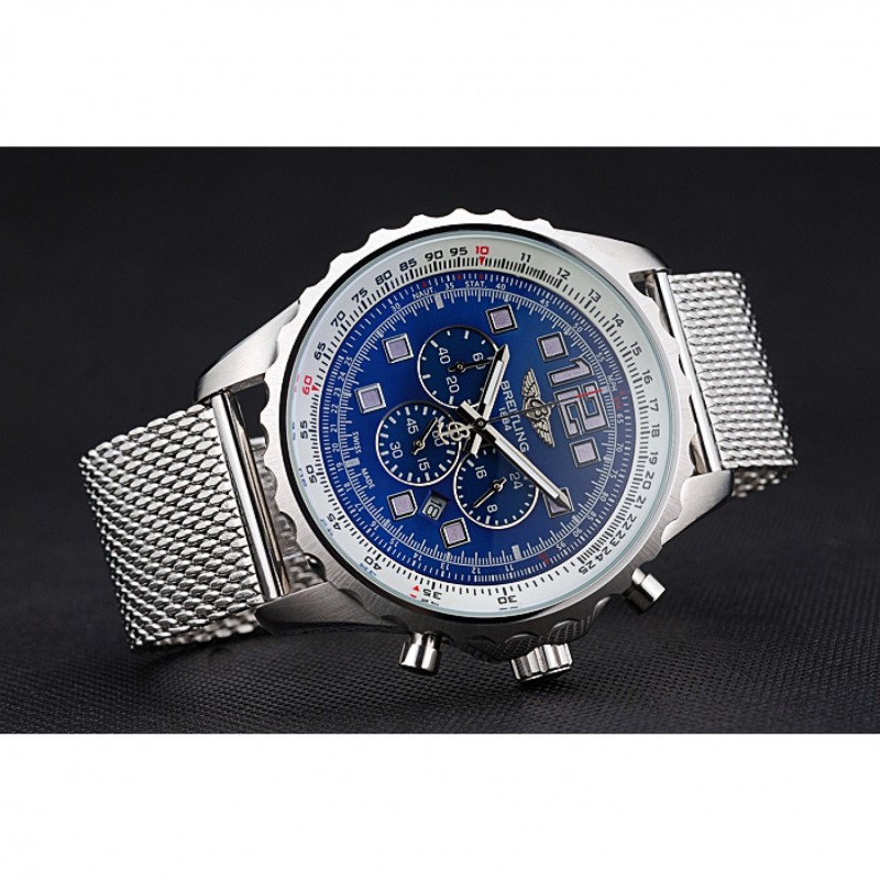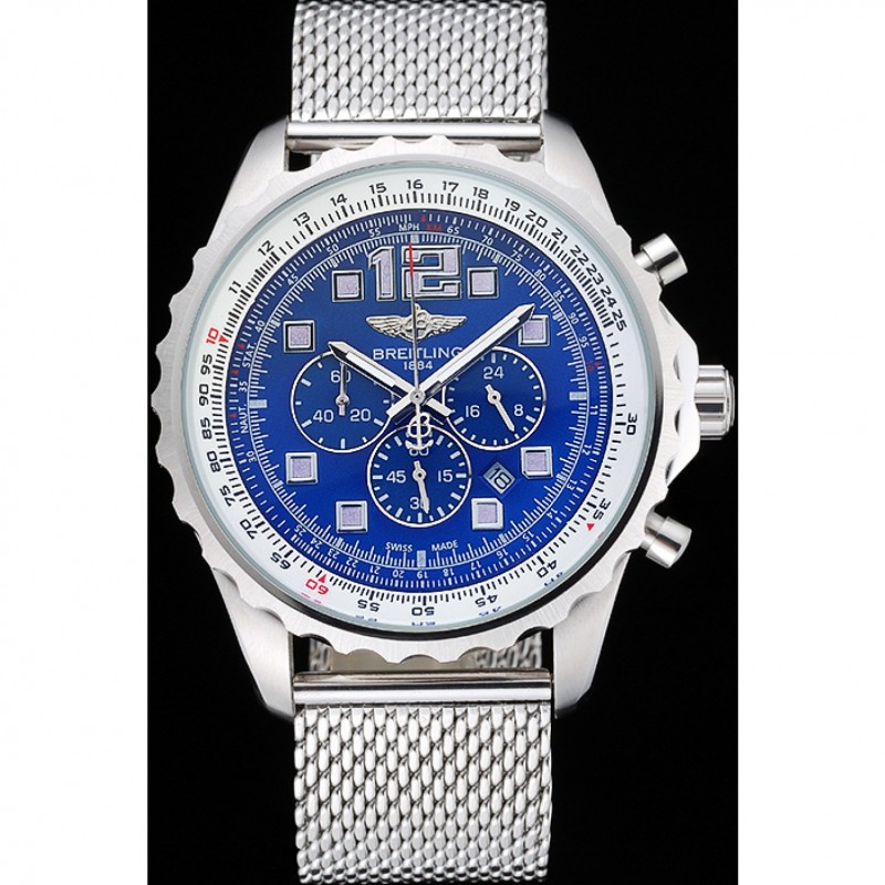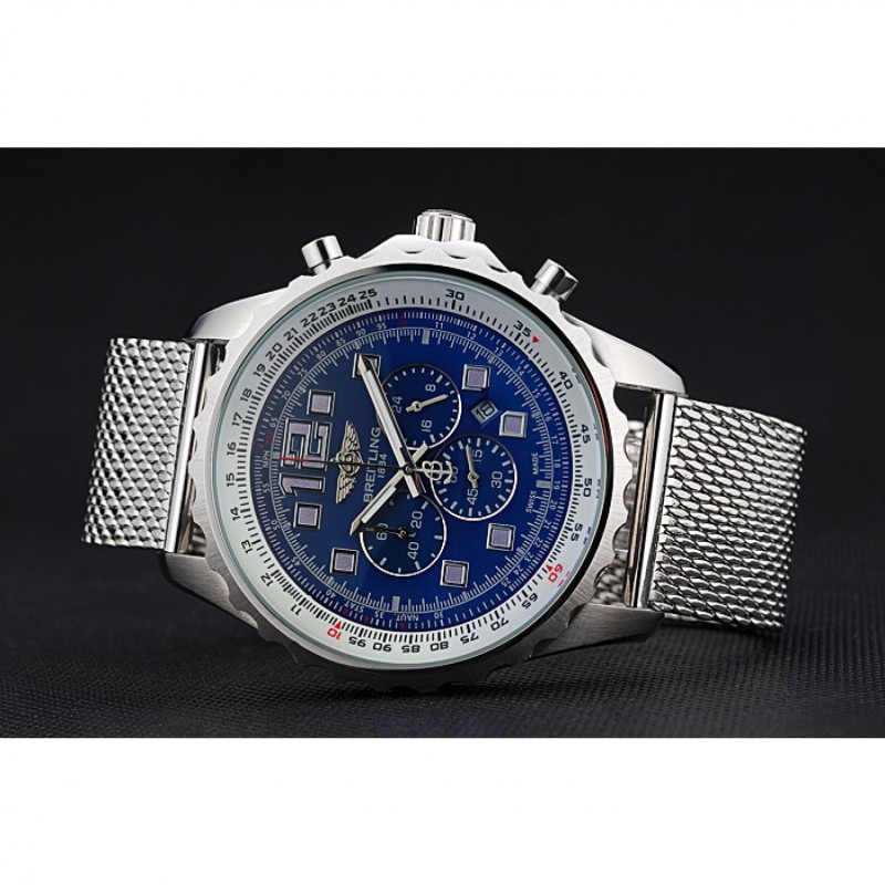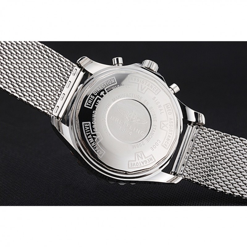 Couronne:acier inoxydable poli couronne cutwork avec le logo Breitling et deux petites couronnes à bouton-poussoir rond de chaque côté de celui-ci