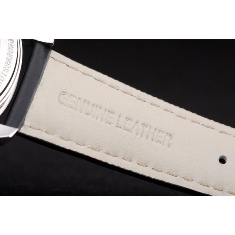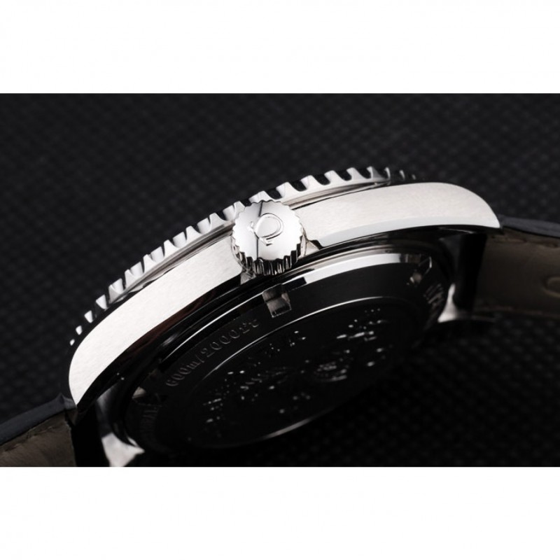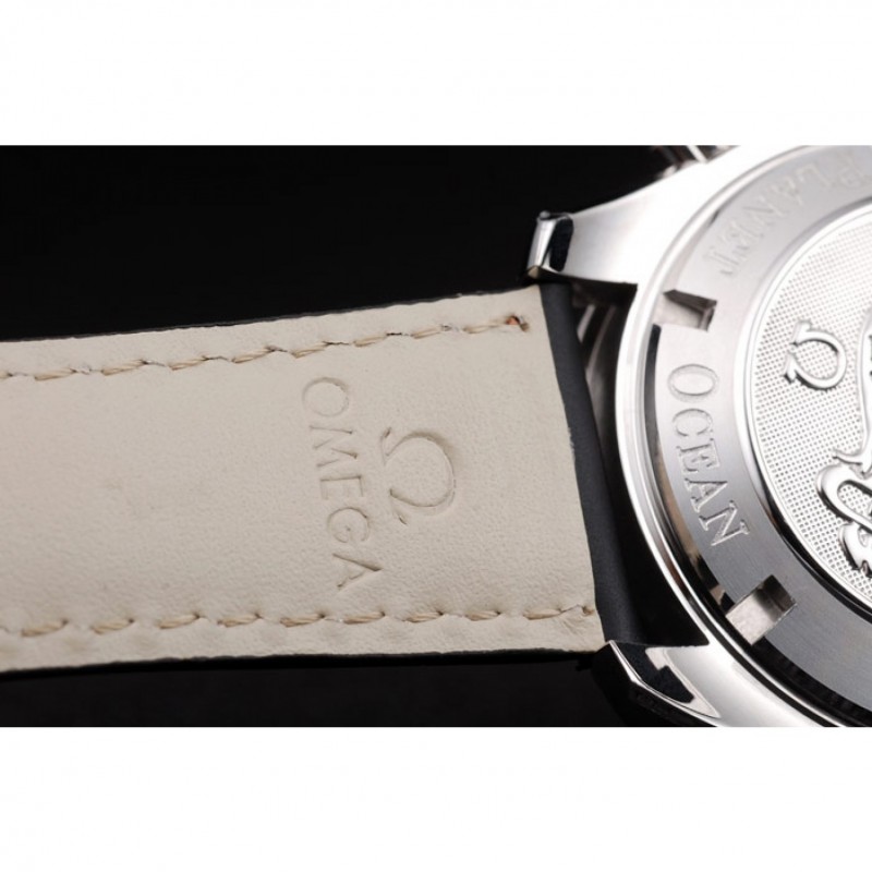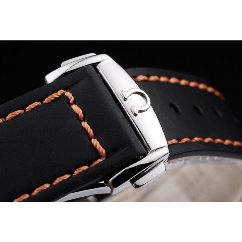 Bracelet:orange cousu bracelet en cuir noir avec la chaleur embossé timbre Omega et acier inoxydable poli fois en boucle avec le logo Omega sur