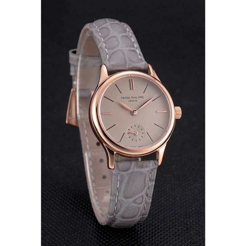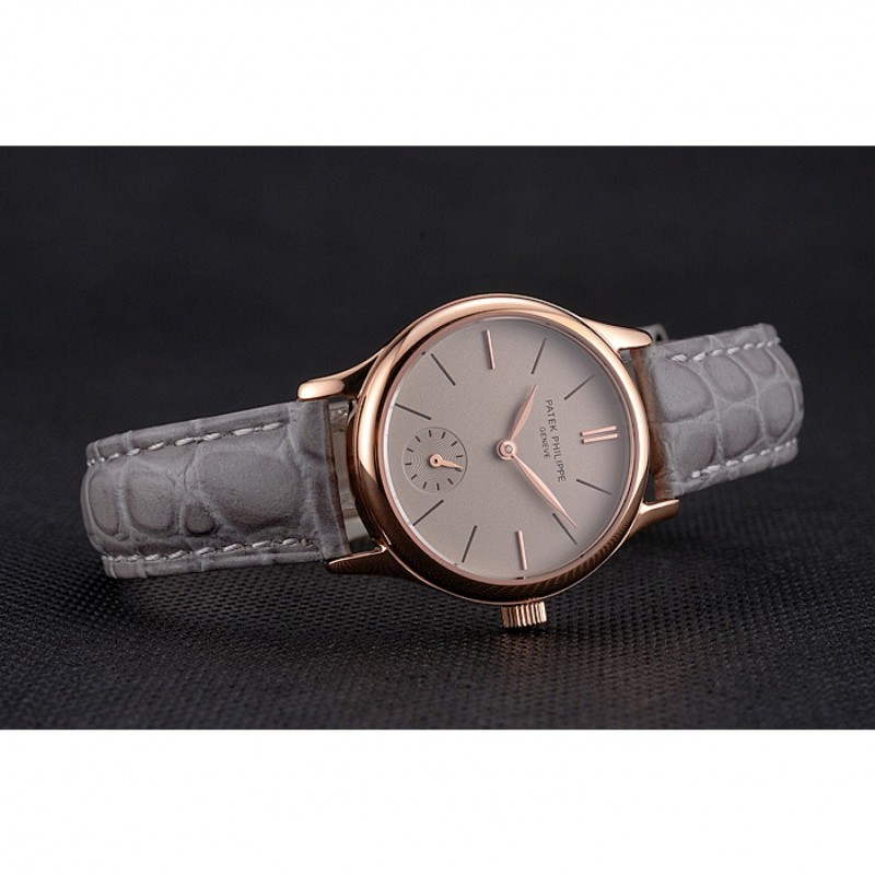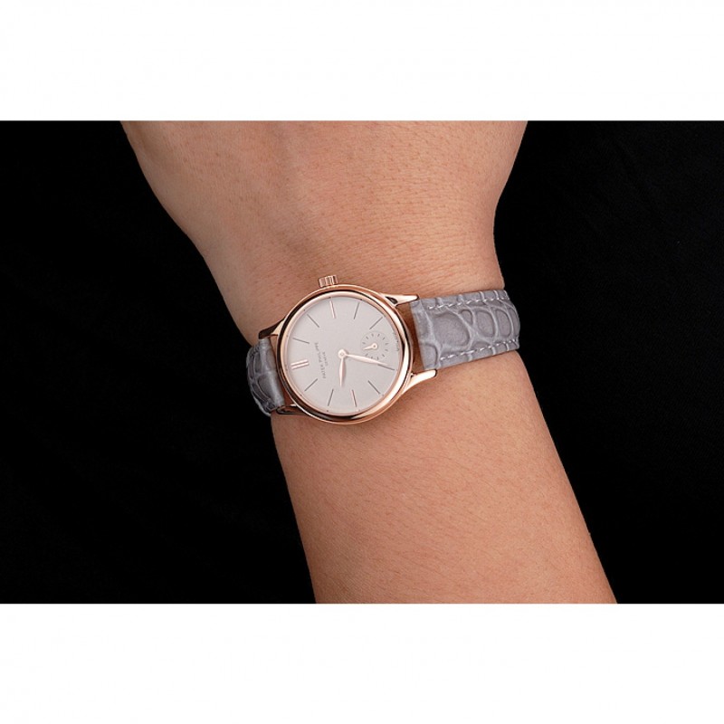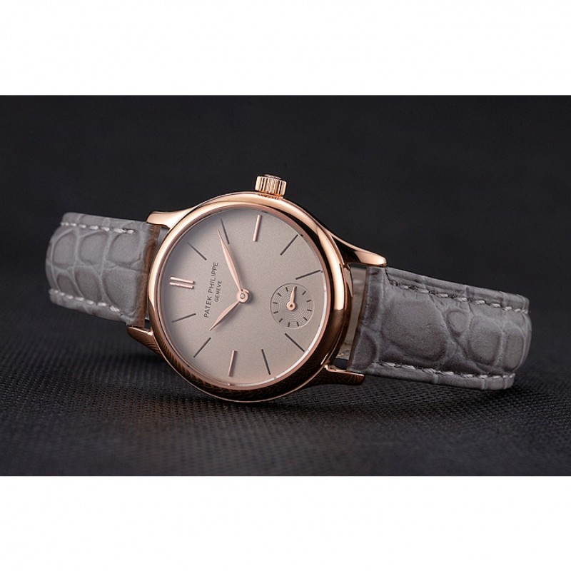Bracelet:Patek Philippe et la chaleur de logo en relief sangle crocodile en cuir gris avec Patek Philippe et logo inscrit 18k rose plaqué or fermoir crochet-boucle