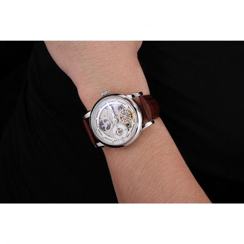 Retour:en acier inoxydable poli cerclée snap -dans arrière avec la mécanique transparents centre révélateur et gravures Patek Philippe