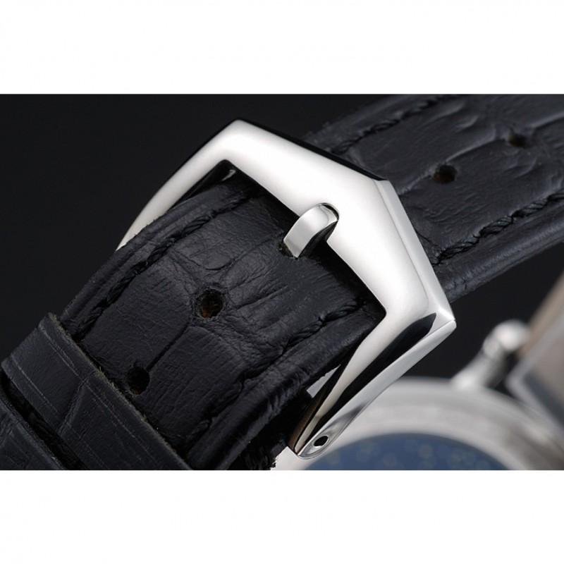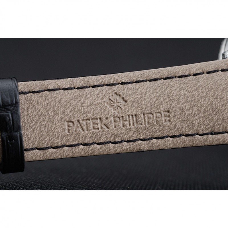 Bracelet:Patek Philippe et logo chaleur bracelet en cuir crocodile noir en relief avec fermoir crochet-boucle en acier inoxydable poli