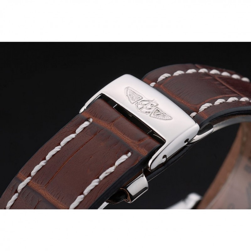Bracelet:chaleur Breitling bracelet en cuir de crocodile brun en relief avec des coutures de fil blanc et Breitling logo gravé pli en boucle en acier inoxydable poli