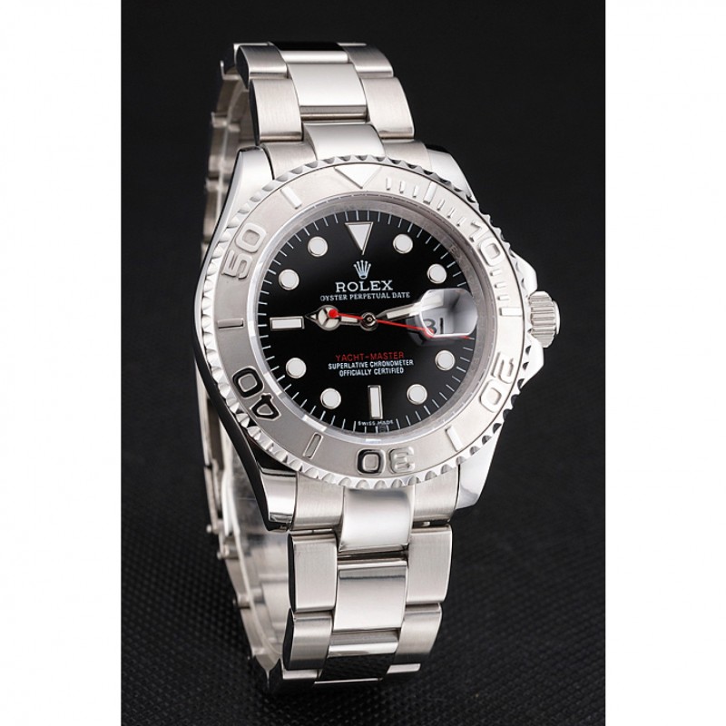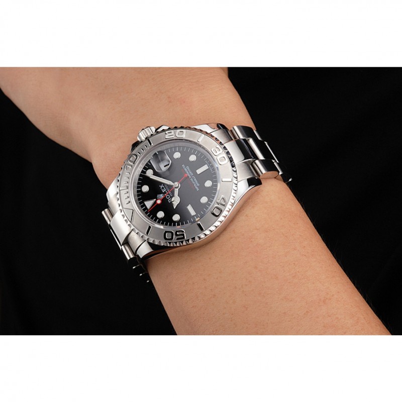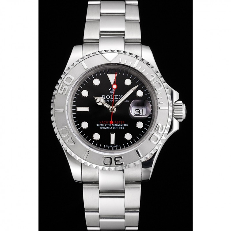 Pas Cher Replique Montre Swiss Rolex Yacht-Master cadran noir Boîtier en acier inoxydable et le bracelet