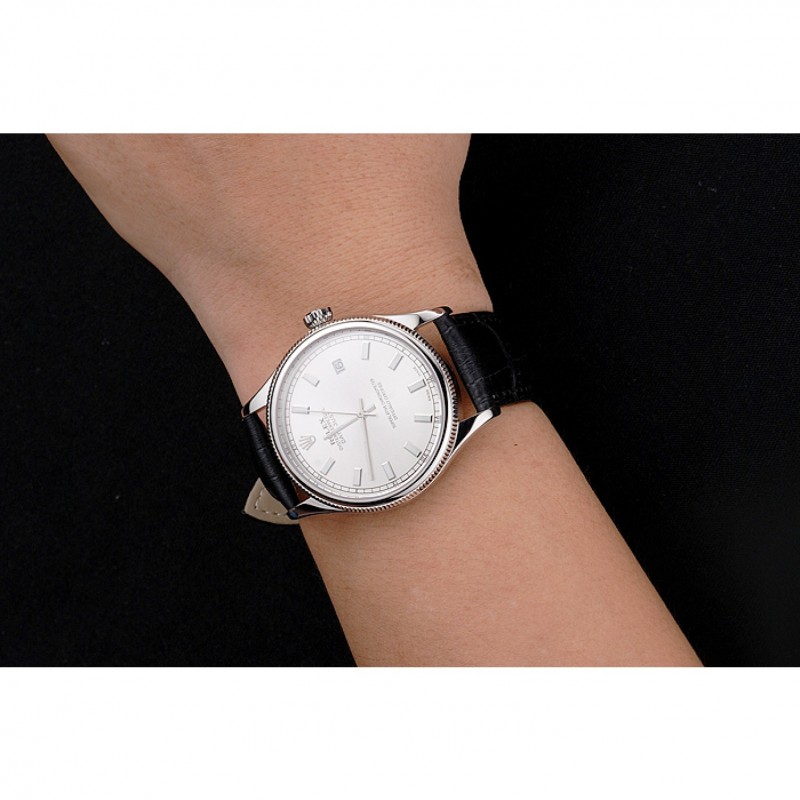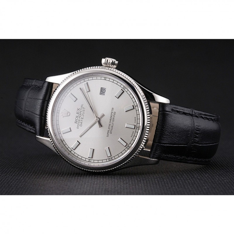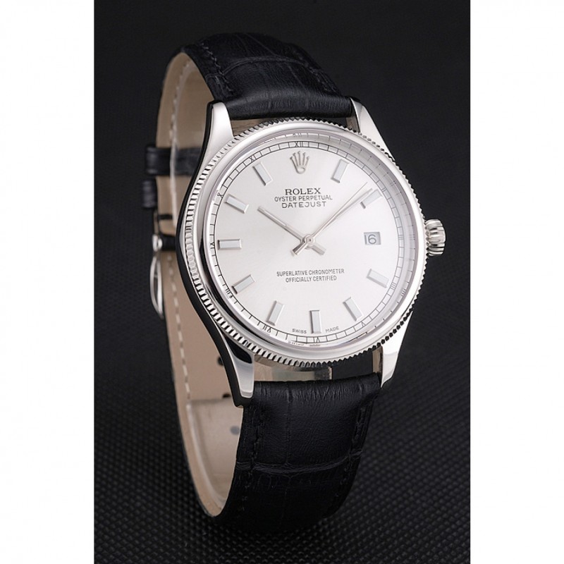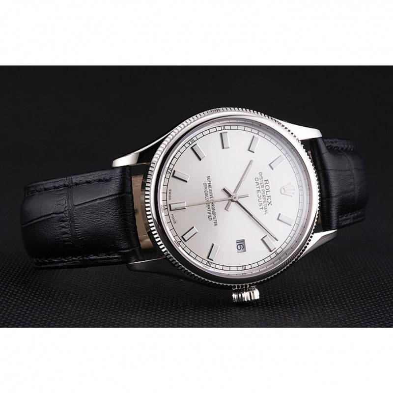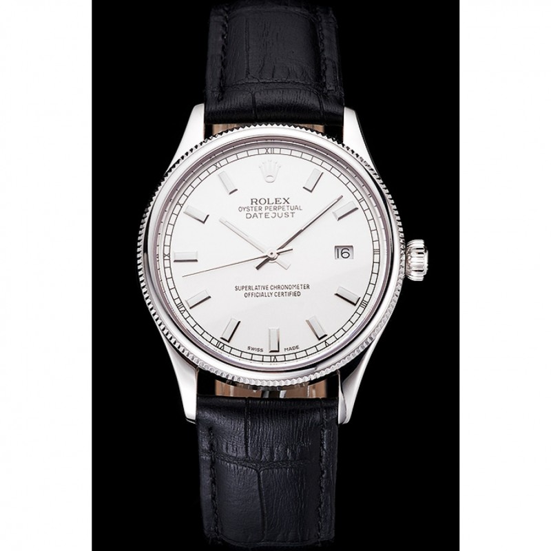 Pas Cher Rolex Datejust suisse cadran blanc Boîtier en acier inoxydable Bracelet en cuir noir