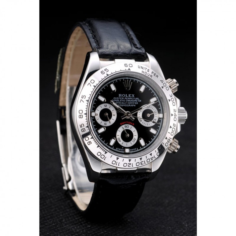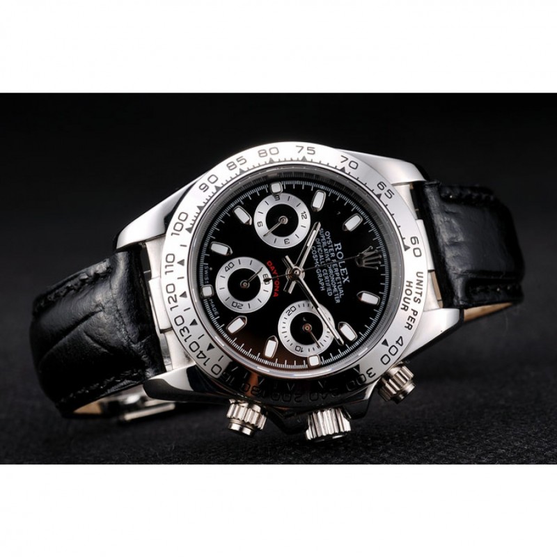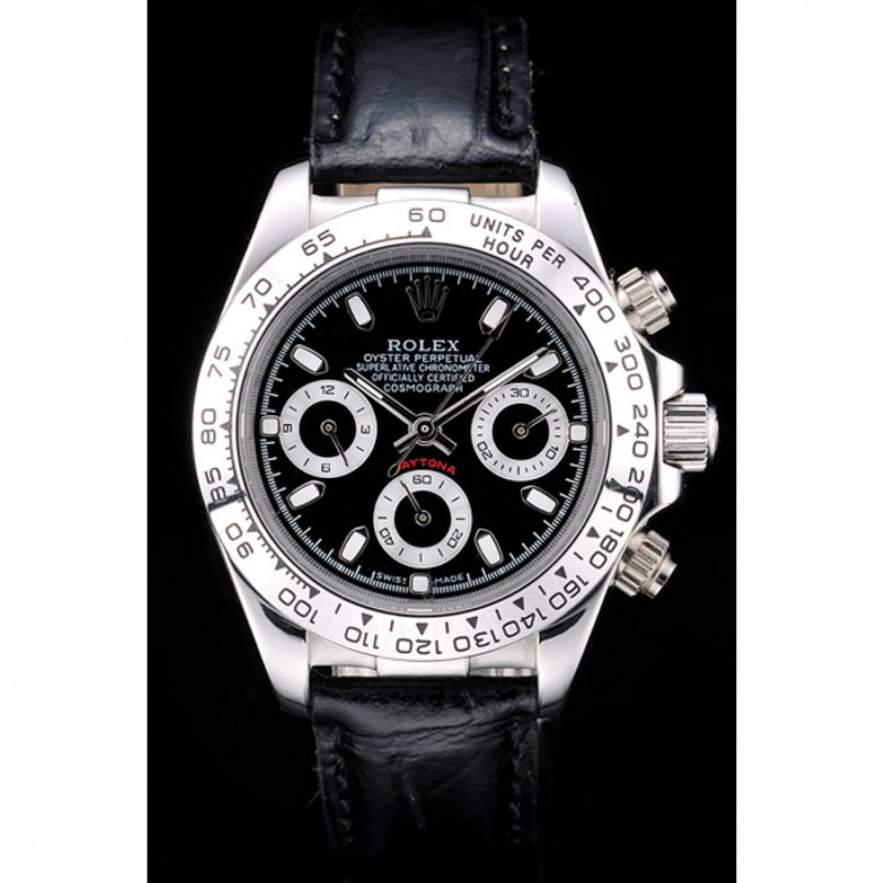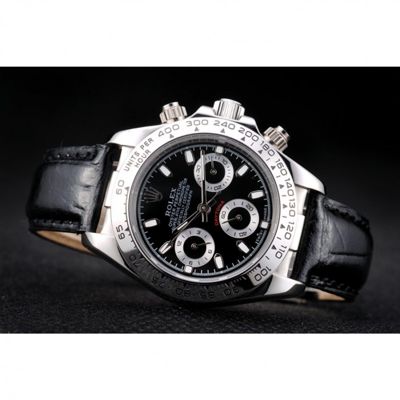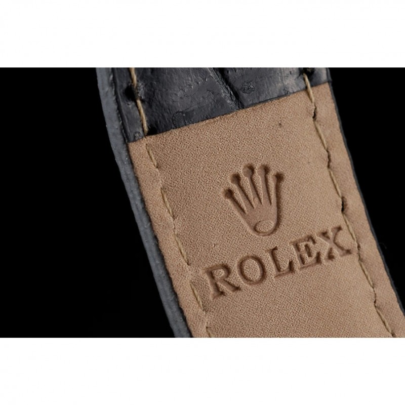 Bracelet:chaleur Rolex relief bracelet en cuir de crocodile noir avec boucle déployante en acier inoxydable gravé avec le logo de Rolex sur