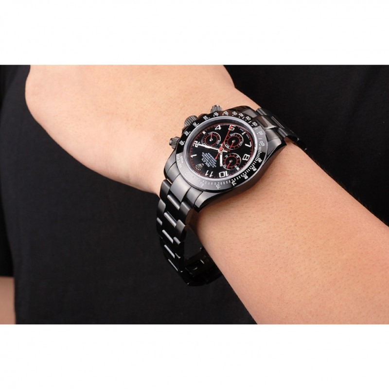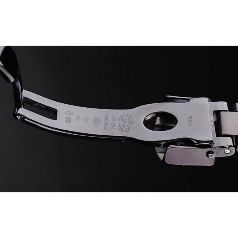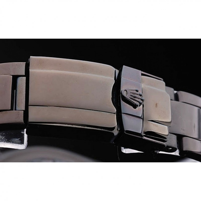 bracelet:Black émaille bracelet à maillons en acier inoxydable avec boucle déployante de gravure Rolex affichant le logo Rolex