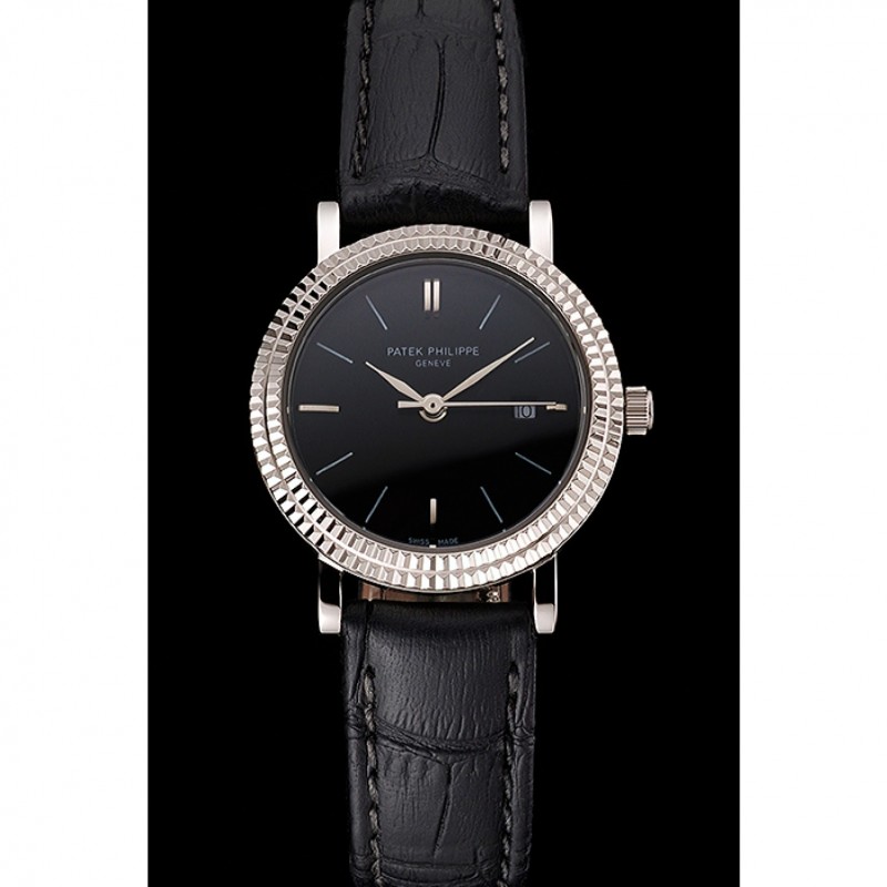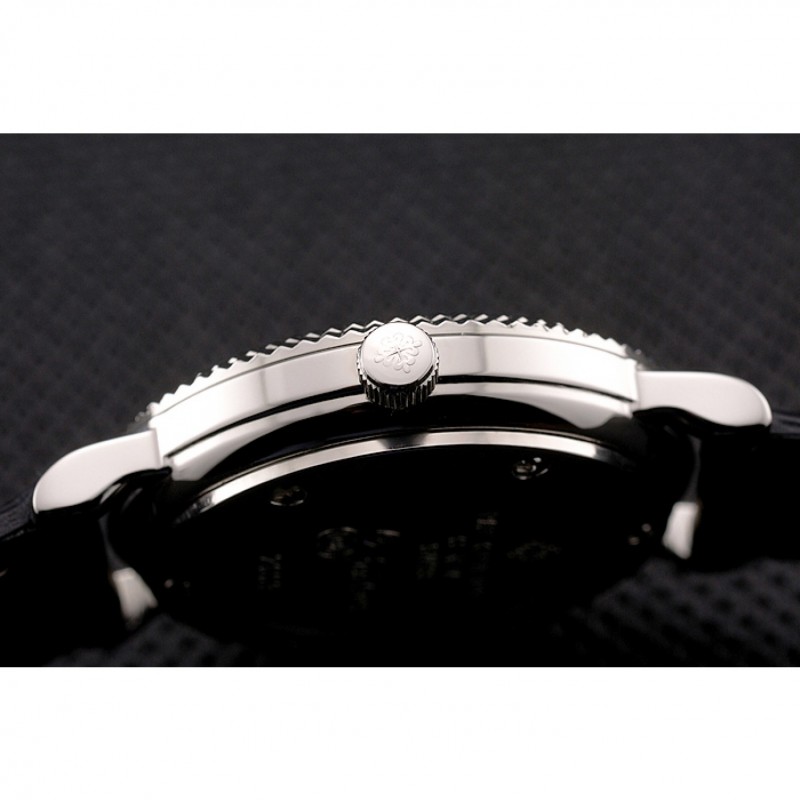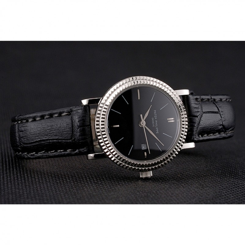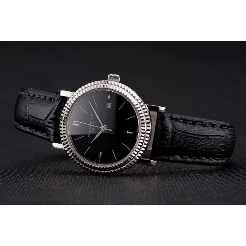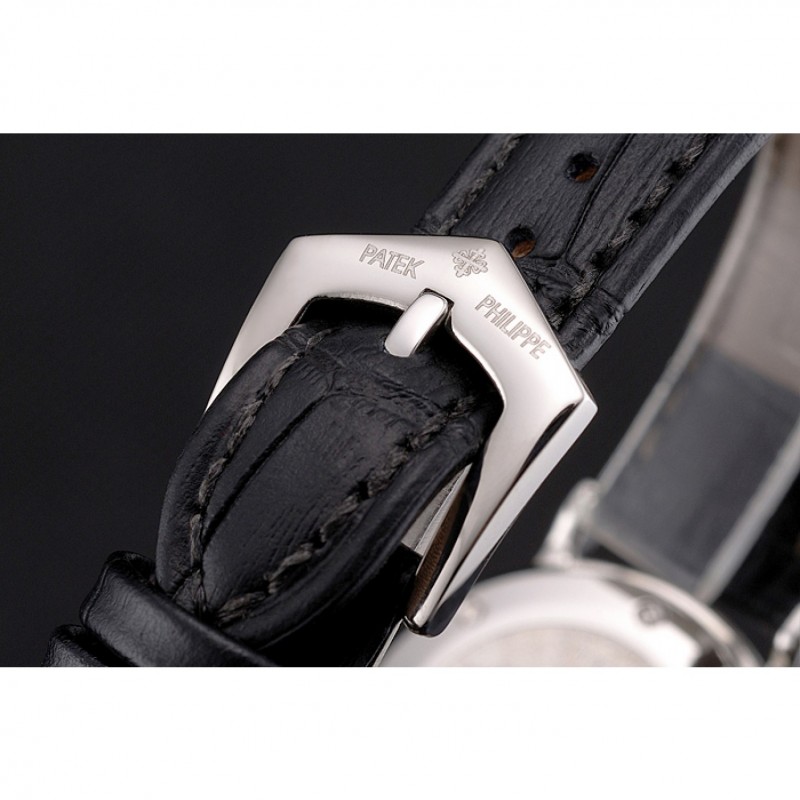 Bracelet:logo et la chaleur Patek Philippe gaufrée bracelet en cuir de crocodile noir avec logo et Patek Philippe gravé en acier inoxydable poli fermoir crochet boucle