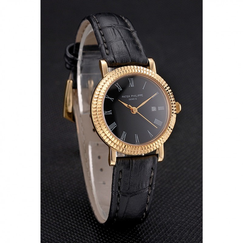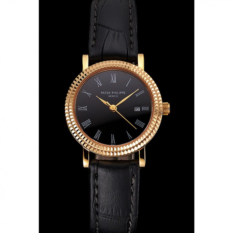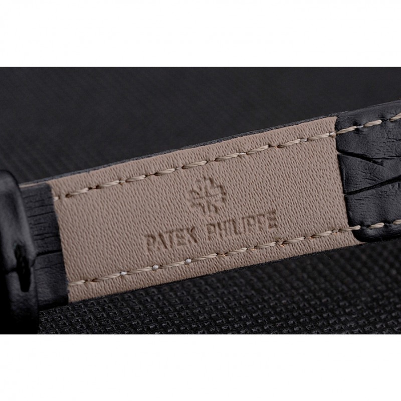 Bracelet:logo et Patek Philippe bracelet en cuir de crocodile noir embossé chaleur avec logo et Patek Philippe gravé or jaune 18 carats plaqué fermoir crochet boucle