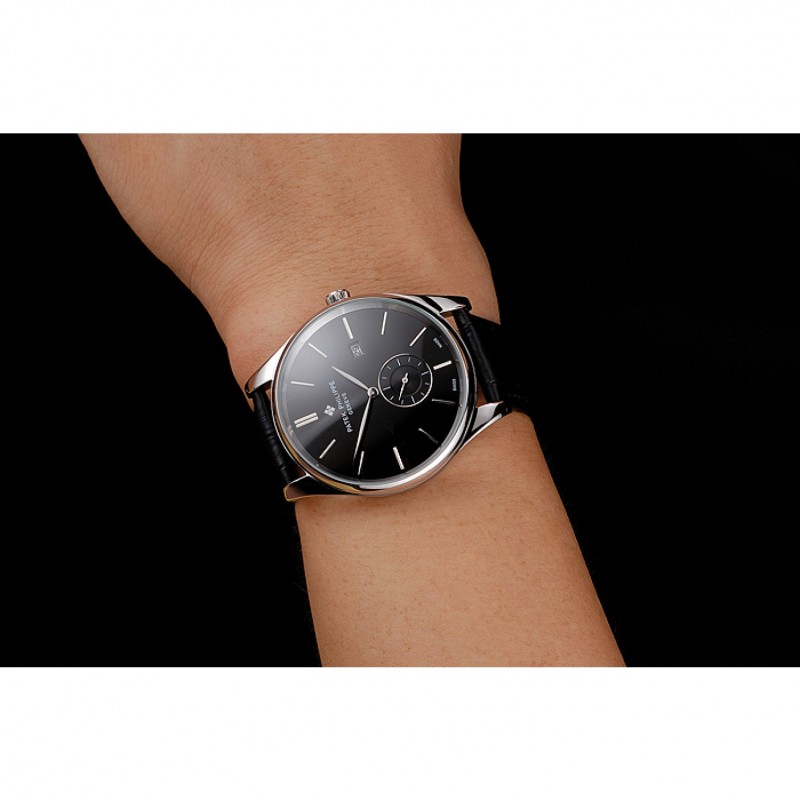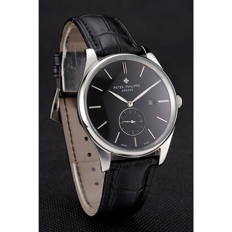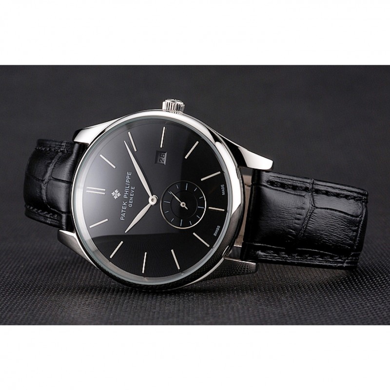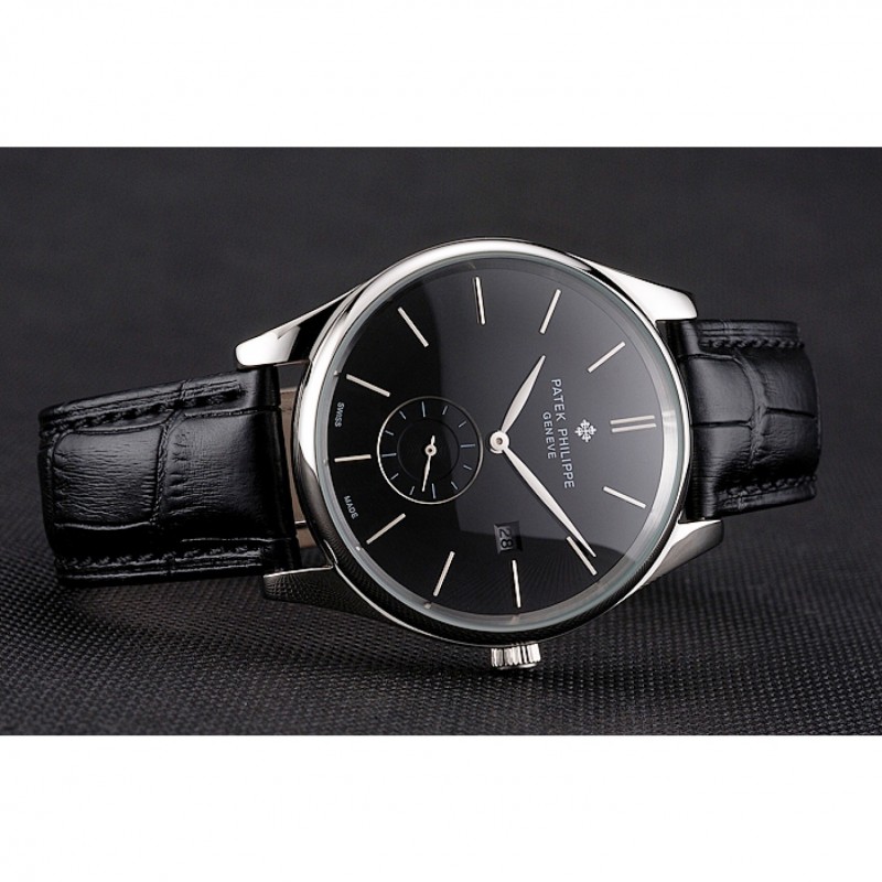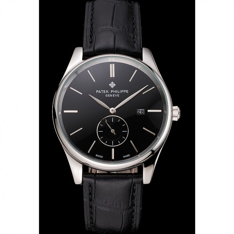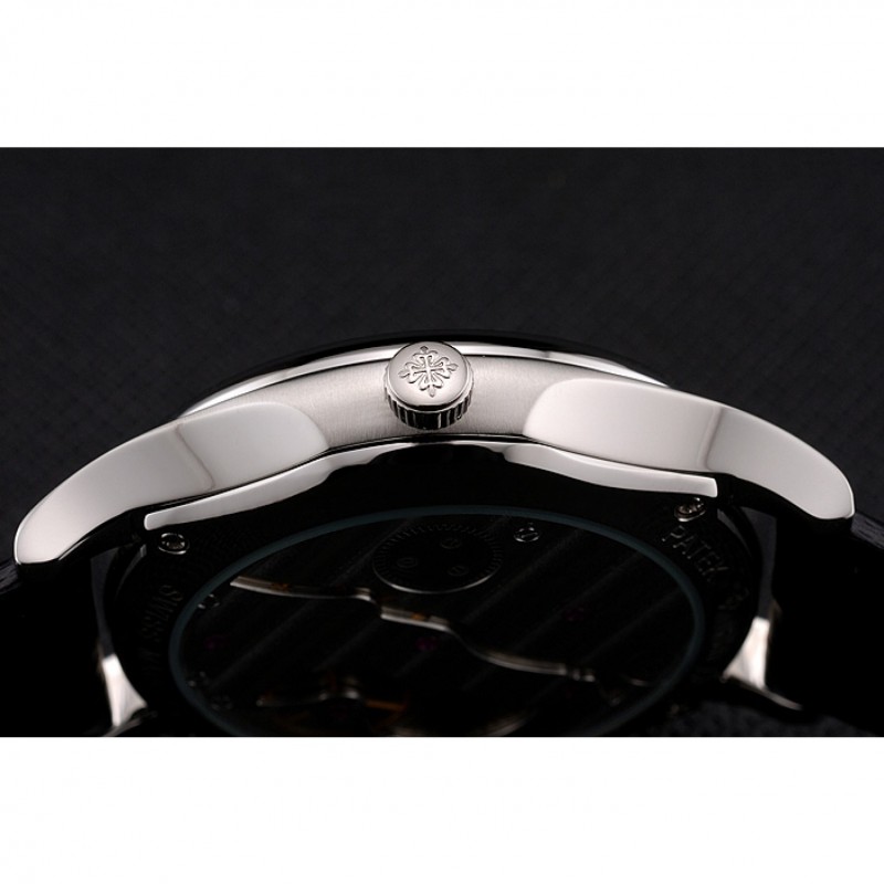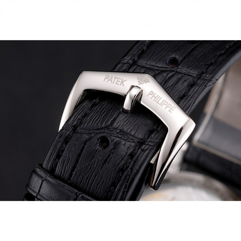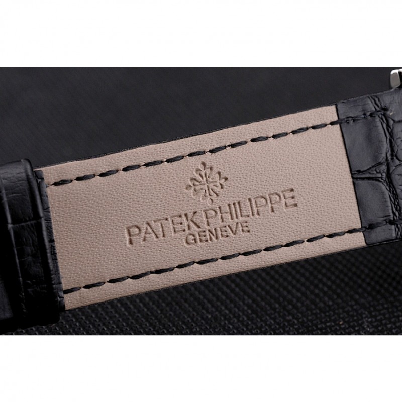 Bracelet:logo et la chaleur Patek Philippe bracelet en cuir gaufré crocodile noir avec logo et Patek Philippe gravé fermoir crochet-boucle en acier inoxydable poli