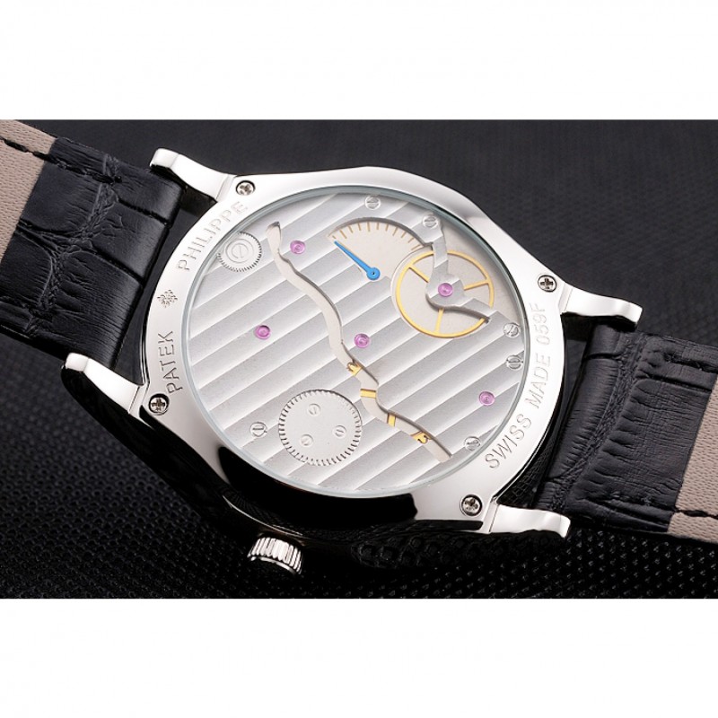 Retour:transparent mécanique révélant retour avec Patek Philippe vissé dans la jante en acier inoxydable poli