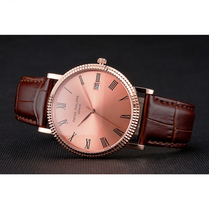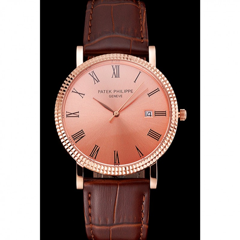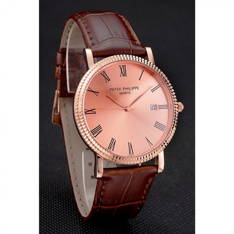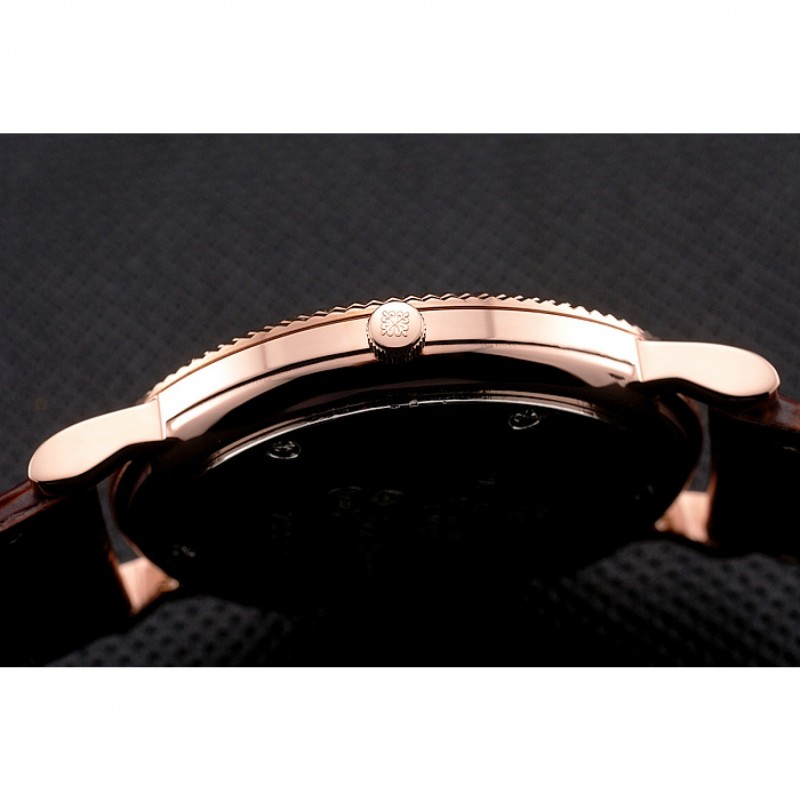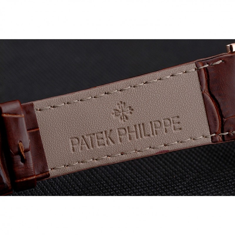 Bracelet:logo et Patek Philippe chaleur embossé bracelet crocodile en cuir marron avec le logo et Patek Philippe gravé 18k or rose plaqué fermoir crochet boucle