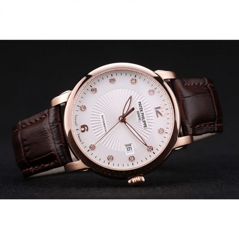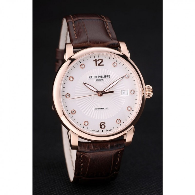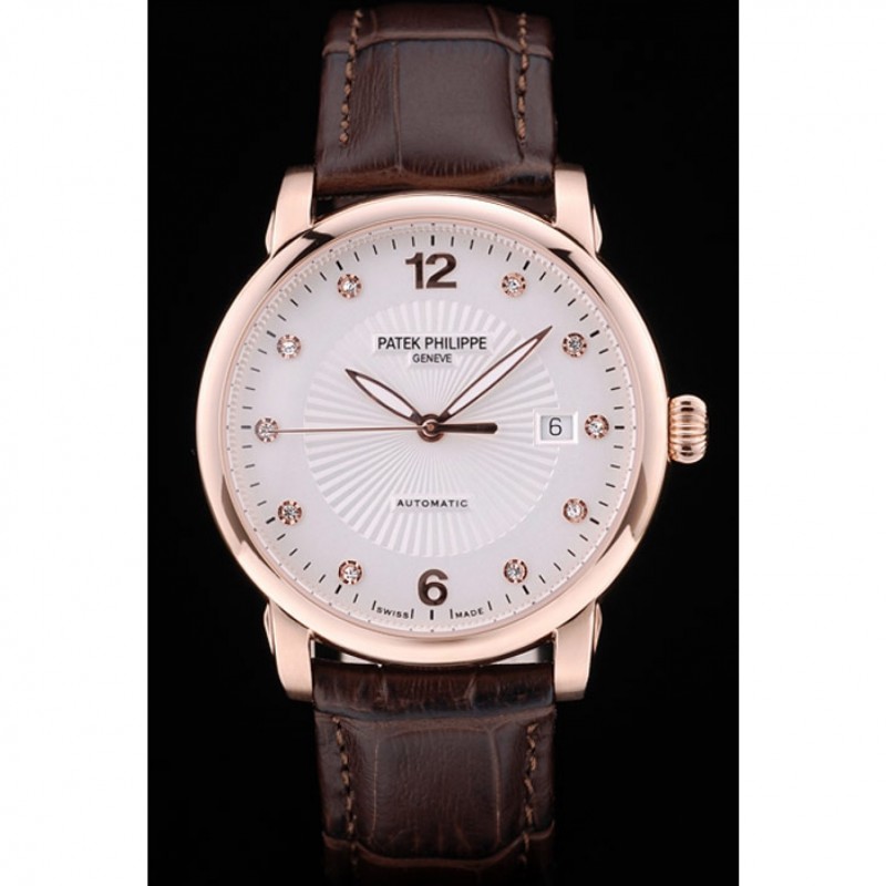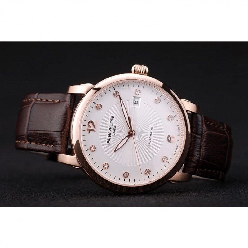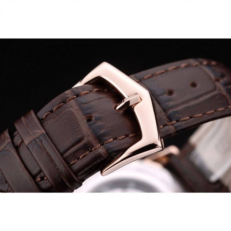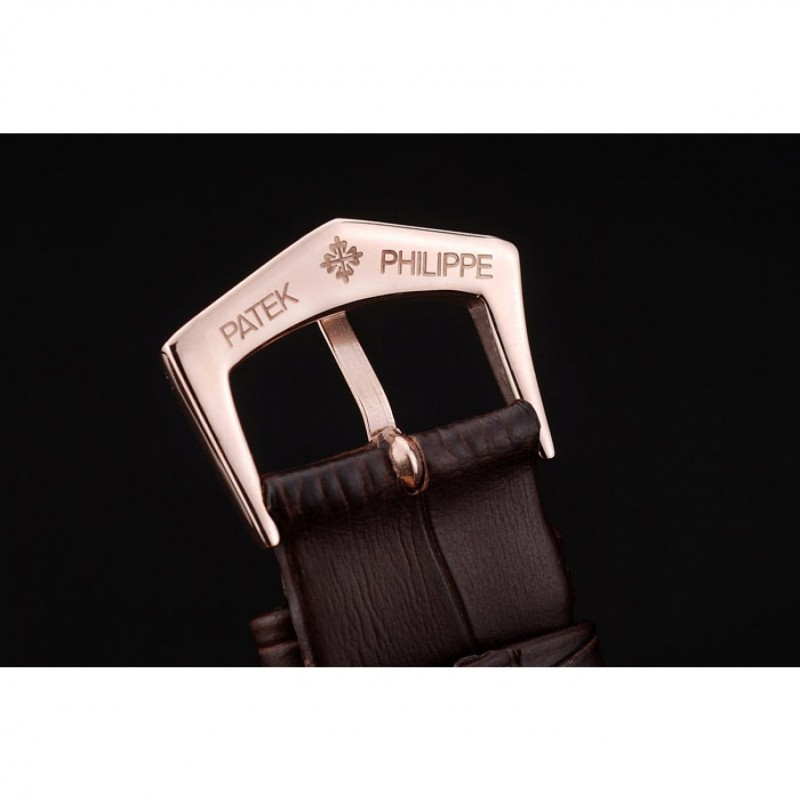 Bracelet:logo, Patek Philippe Geneve bracelet en cuir de crocodile de chocolat gaufrée de chaleur avec Patek Philippe et logo 18k gravé rose plaqué or fermoir crochet-boucle