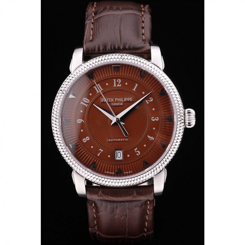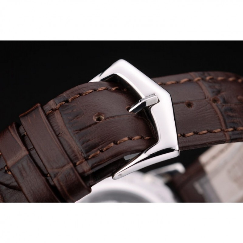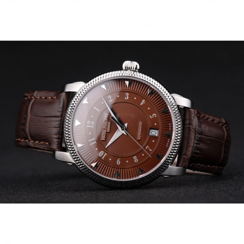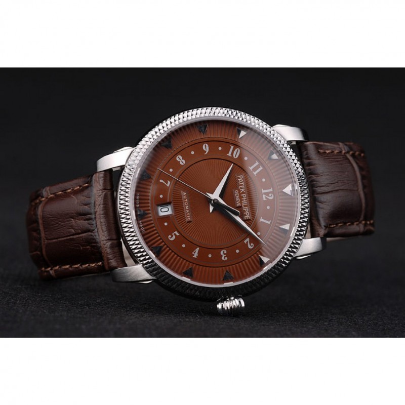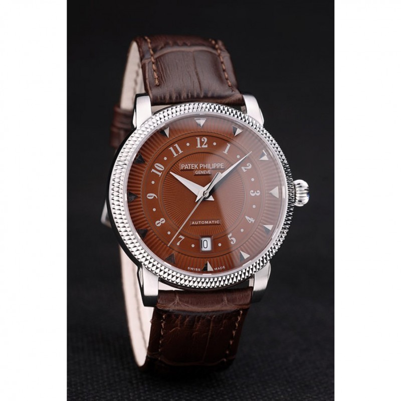 Bracelet:logo, Patek Philippe Geneve chaleur embossé bracelet crocodile en cuir marron avec Patek Philippe et logo gravé fermoir crochet boucle en acier inoxydable poli