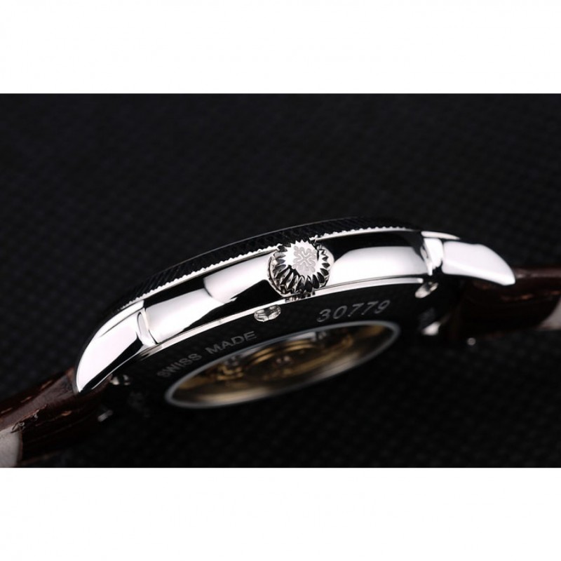 Retour:en acier inoxydable poli encliquetable à l’arrière avec la mécanique transparentes révélant centre et gravures Patek Philippe