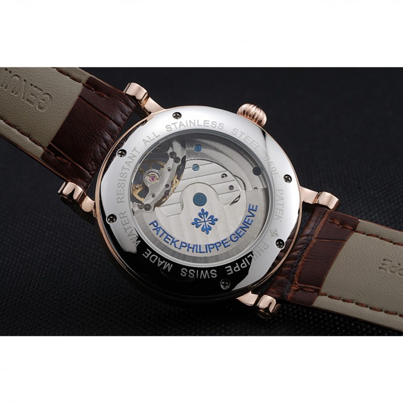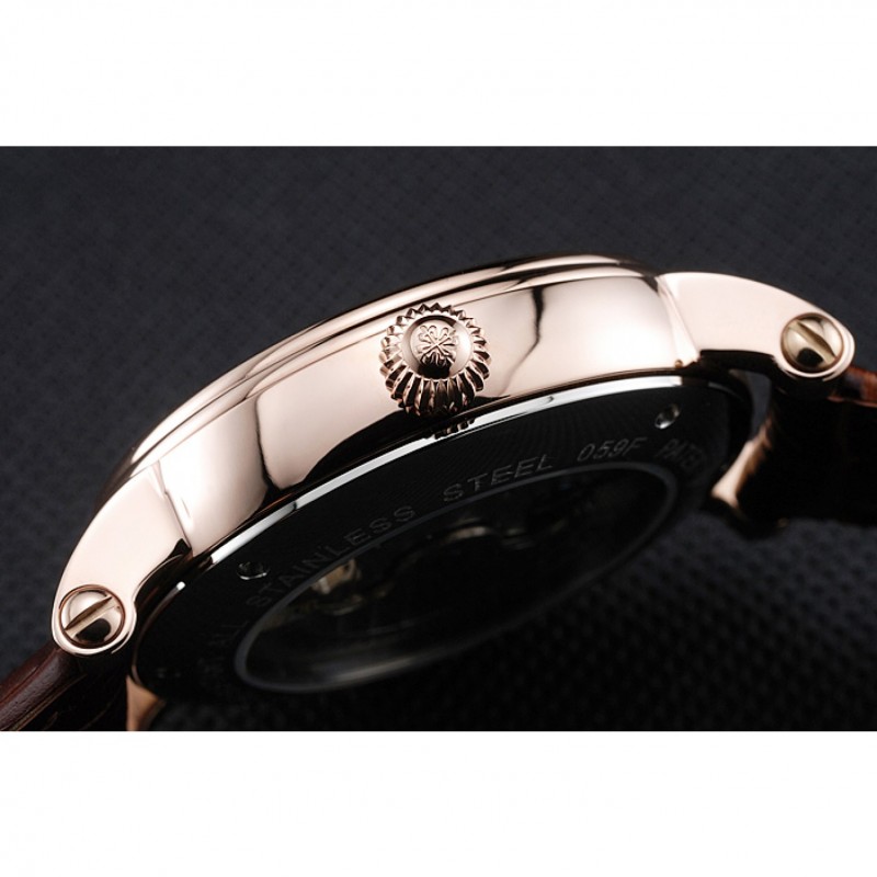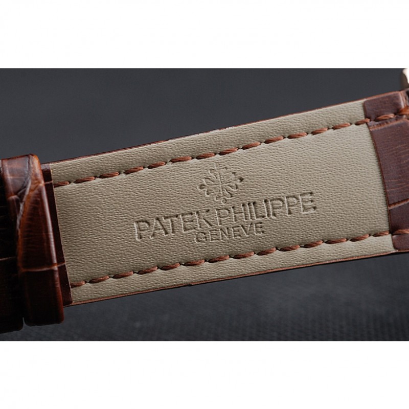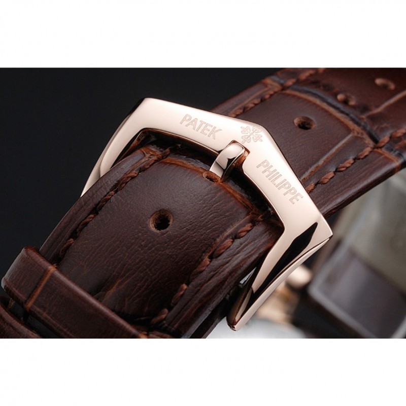Bracelet:logo et Patek Philippe chaleur en relief sangle crocodile en cuir marron avec logo et Patek Philippe gravés 18k rose-or plaqué fermoir crochet-boucle