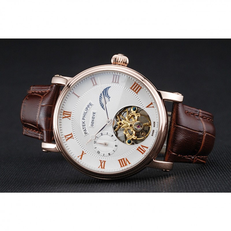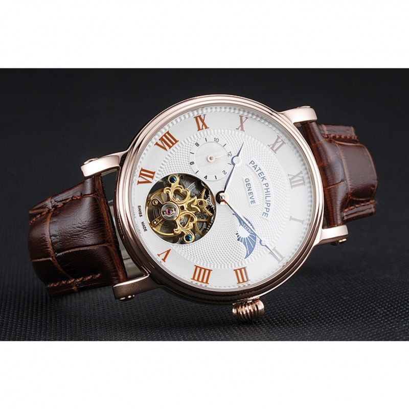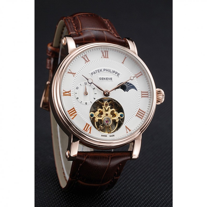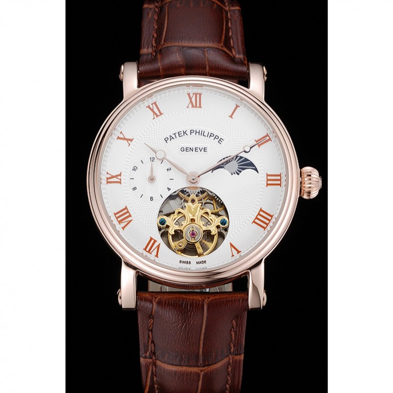 Soyez le premier à laisser votre avis sur “Patek Philippe Complications Moonphase Tourbillon Cadran Blanc boîtier en or rose bracelet en cuir brun”
