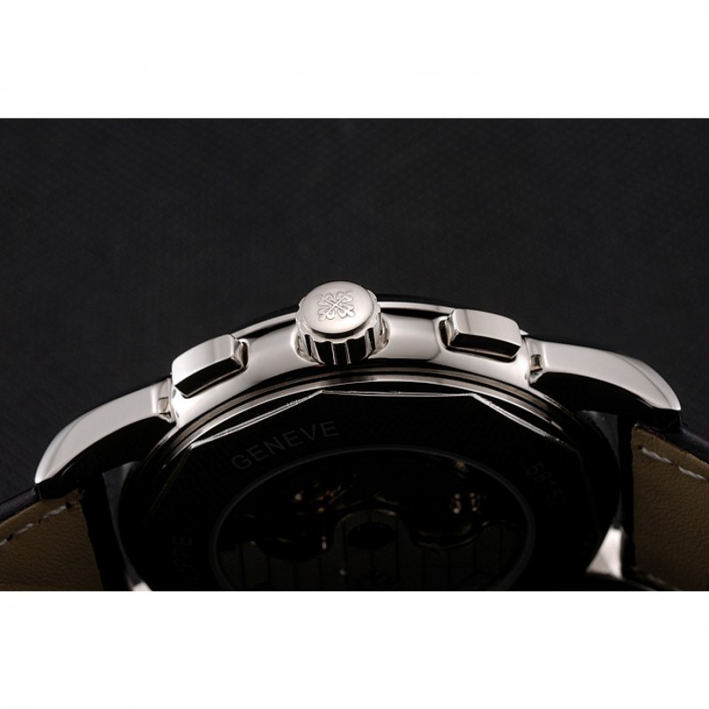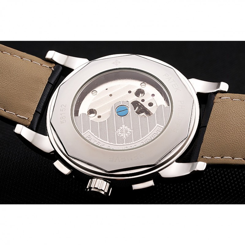 Retour:en acier inoxydable poli encliquetable à l’arrière avec la mécanique transparentes révélant centre et gravure Patek Philippe Geneve
