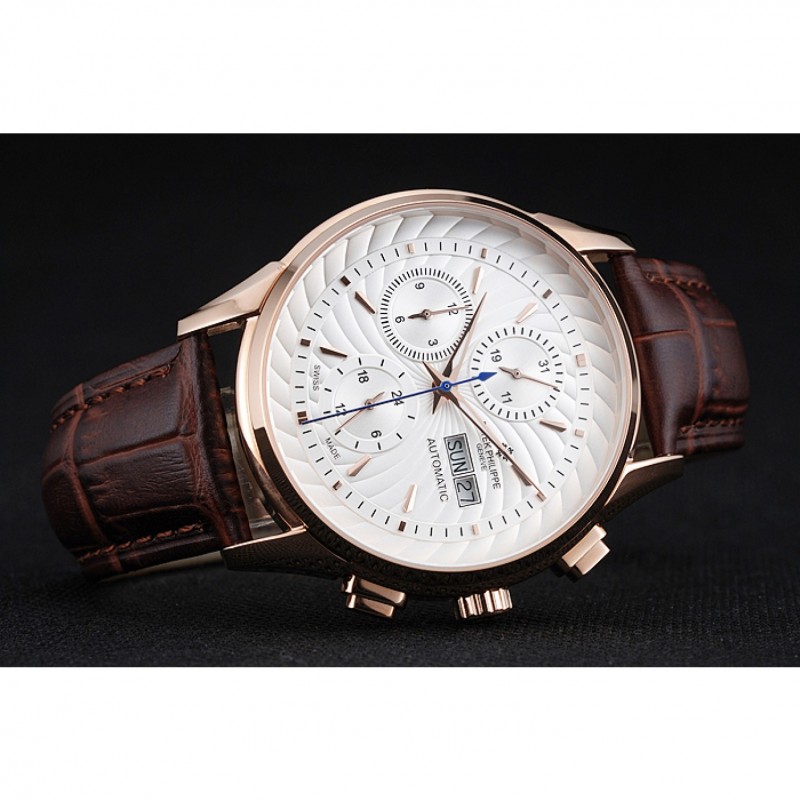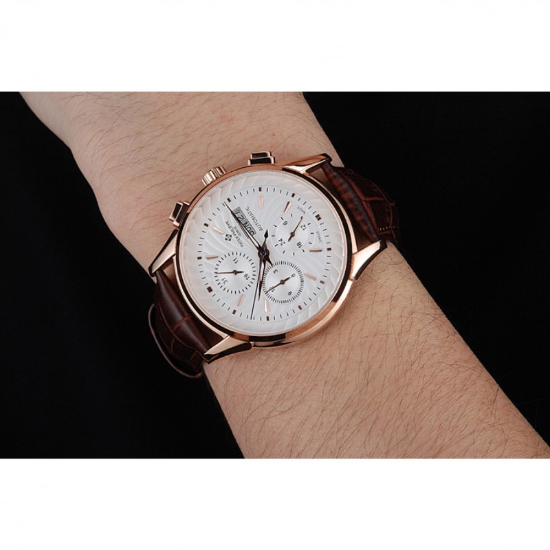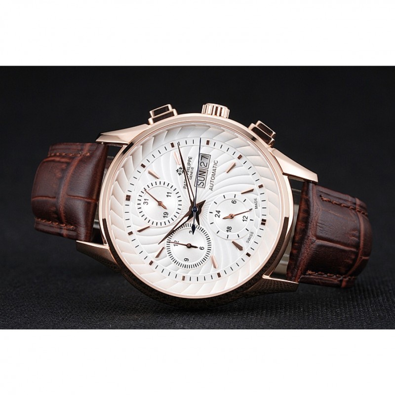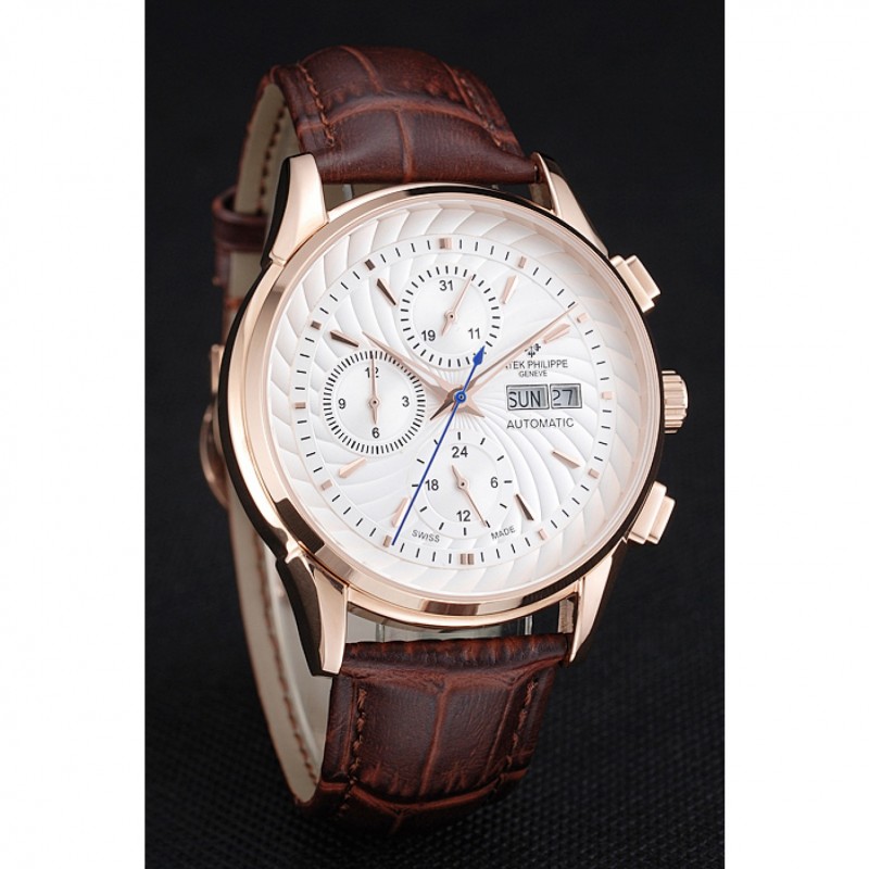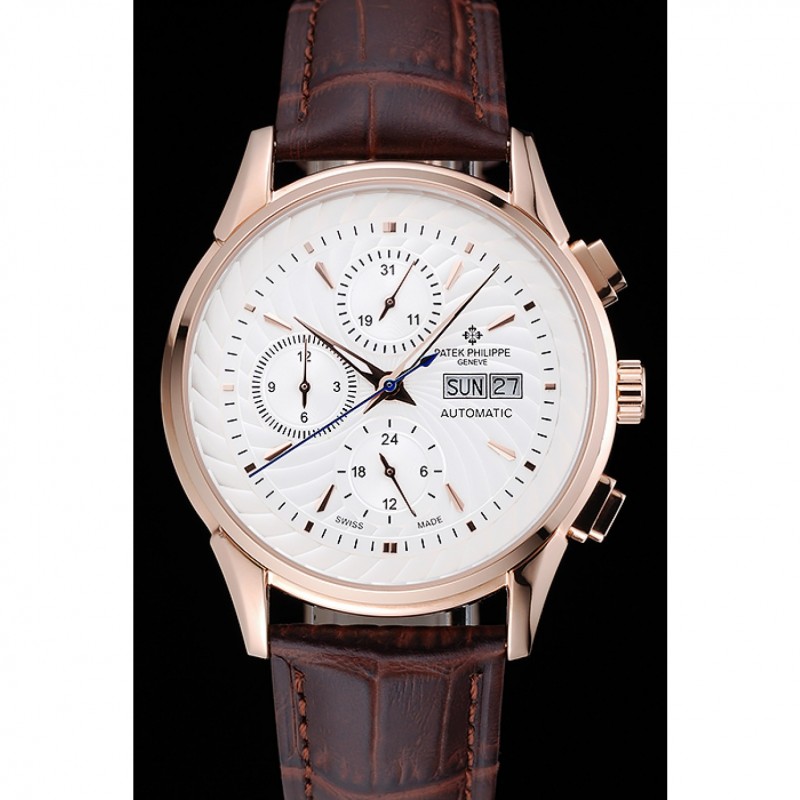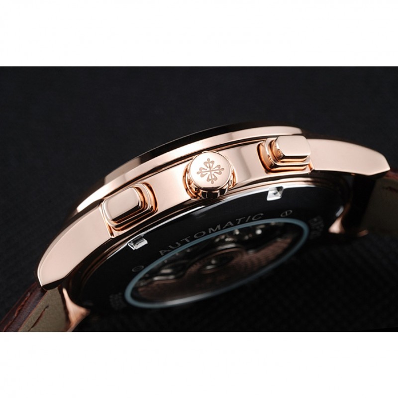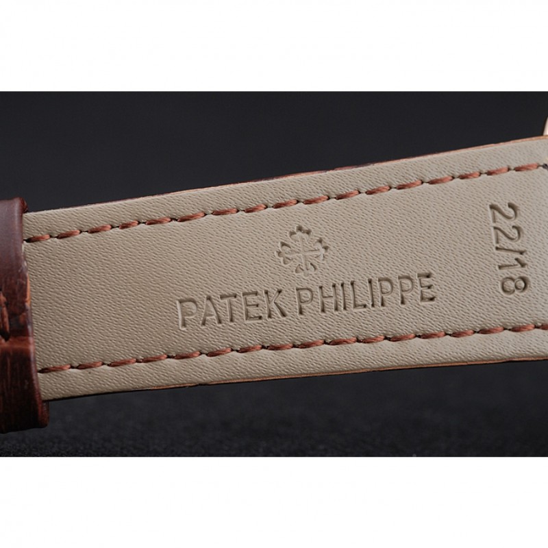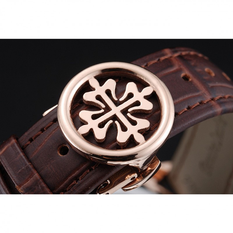 Bracelet:Patek Philippe et logo chaleur bracelet en cuir de crocodile brun relief avec logo Patek Philippe sculpté rose 18K-plaqué or fermoir crochet-boucle