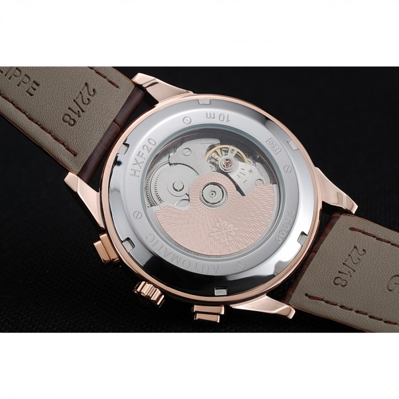 Retour:pression en acier inoxydable poli -in retour avec la mécanique révélant transparente centre et gravure logo Patek Philippe