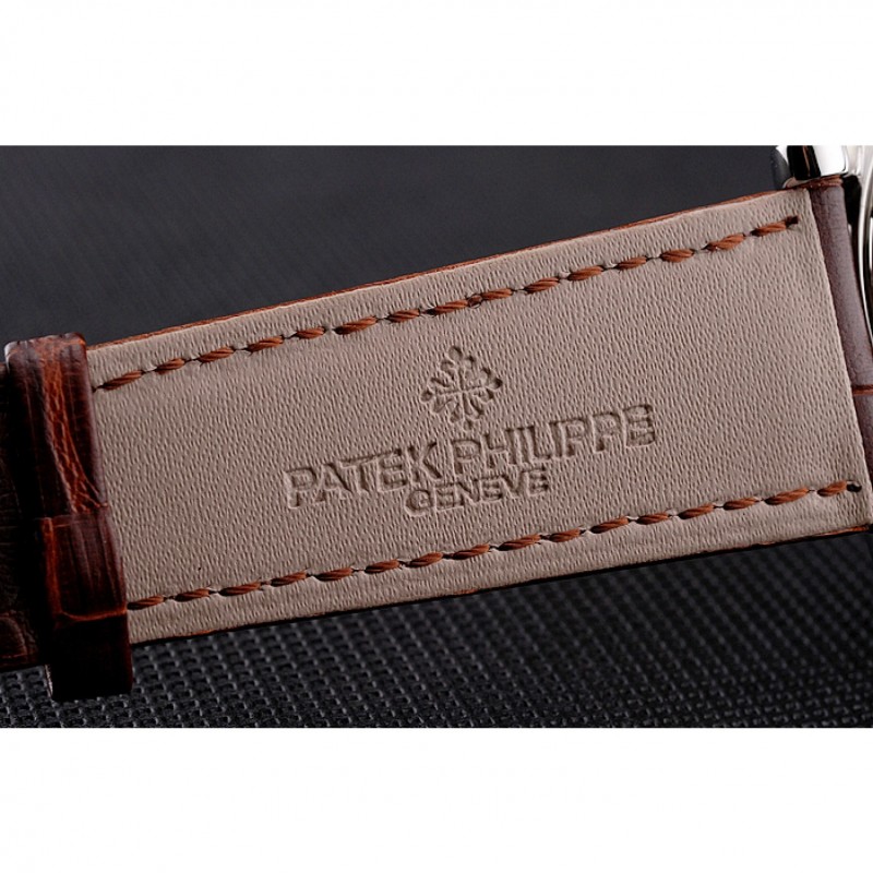 Bracelet:Logo et Patek Philippe chaleur embossé bracelet crocodile en cuir marron avec le logo et Patek Philippe gravé en acier inoxydable poli fermoir crochet boucle