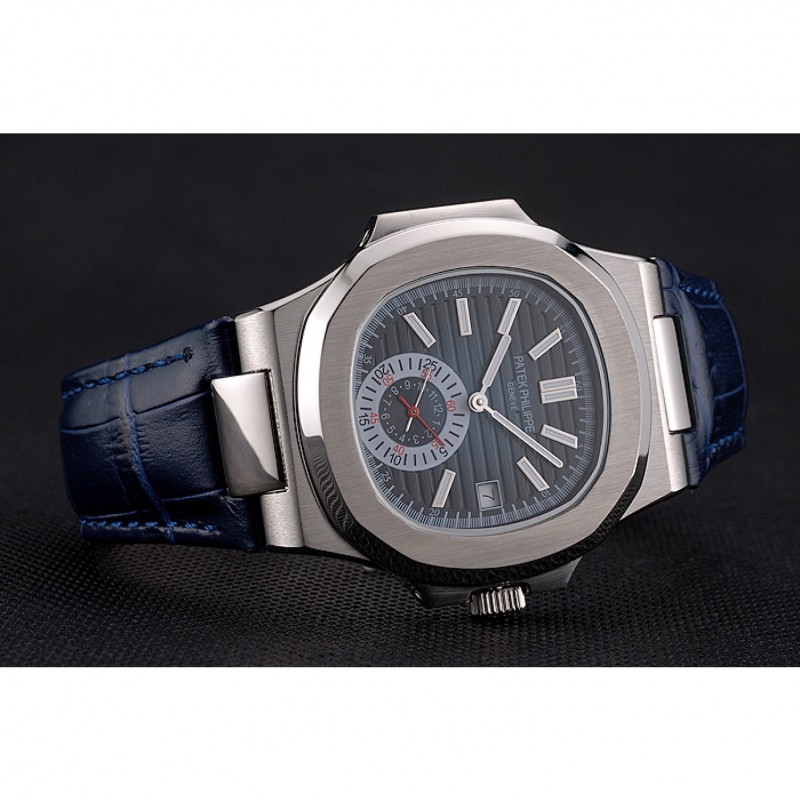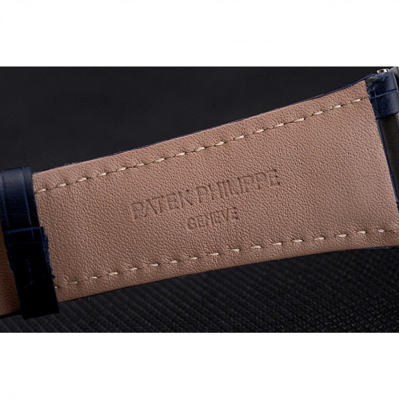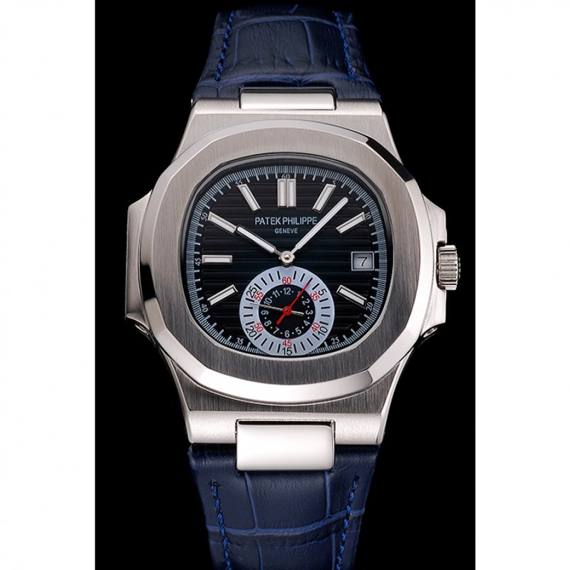 Patek Philippe Nautilus cadran bleu Boîtier en acier inoxydable Bracelet en cuir bleu