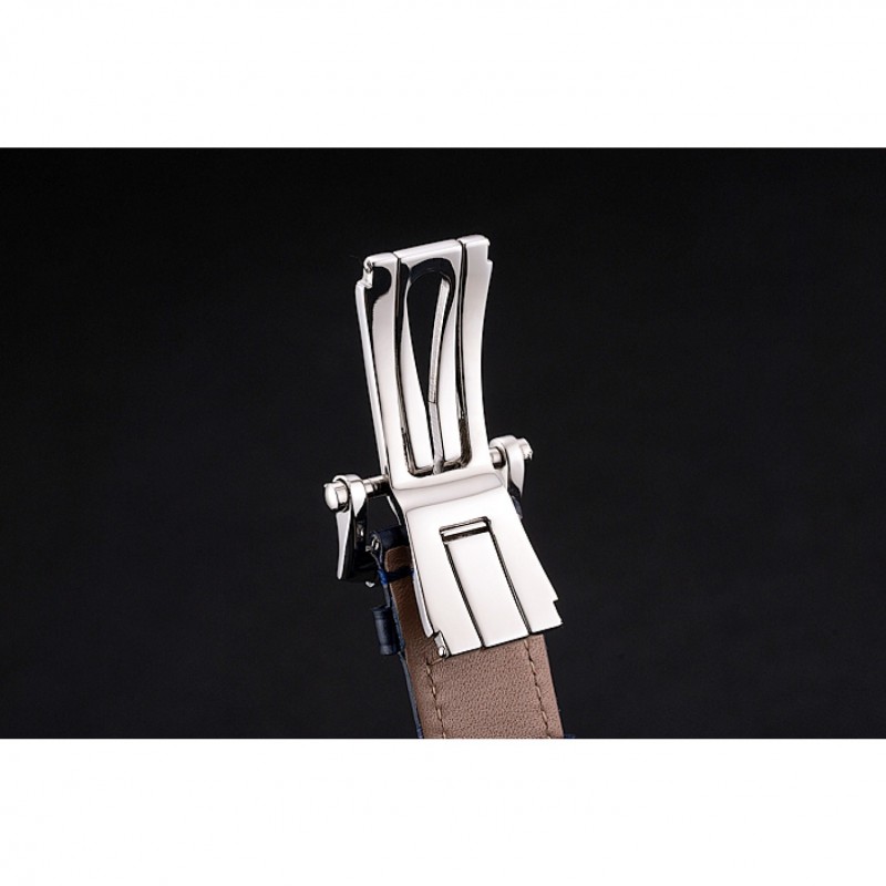 Bracelet:Patek Philippe Geneve chaleur bracelet en cuir de crocodile bleu en relief avec Nautilus gravé fermoir à boucle en acier inoxydable poli