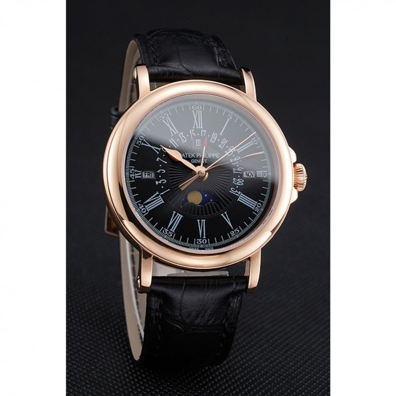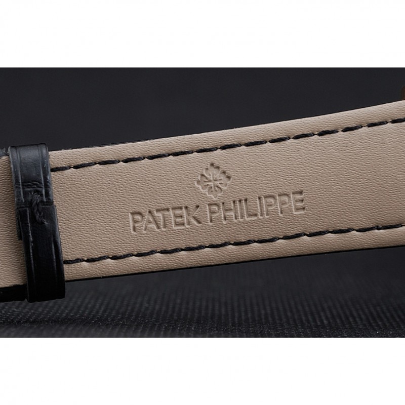 Bracelet:Patek Philippe et la sangle de chaleur en crocodile noir gaufré logo avec 18k rose plaqué or fermoir crochet-boucle