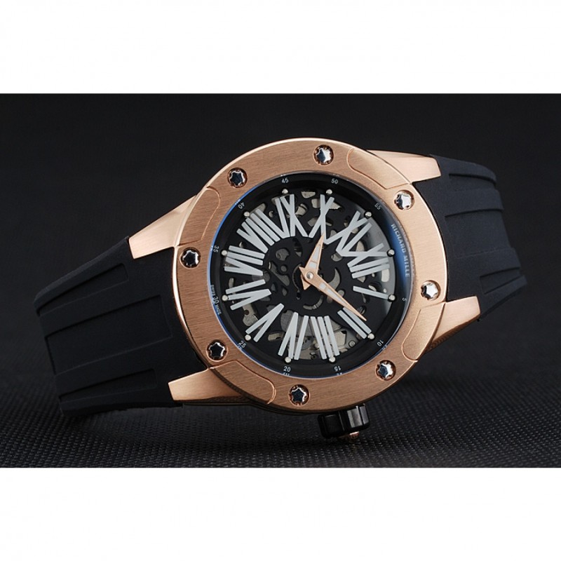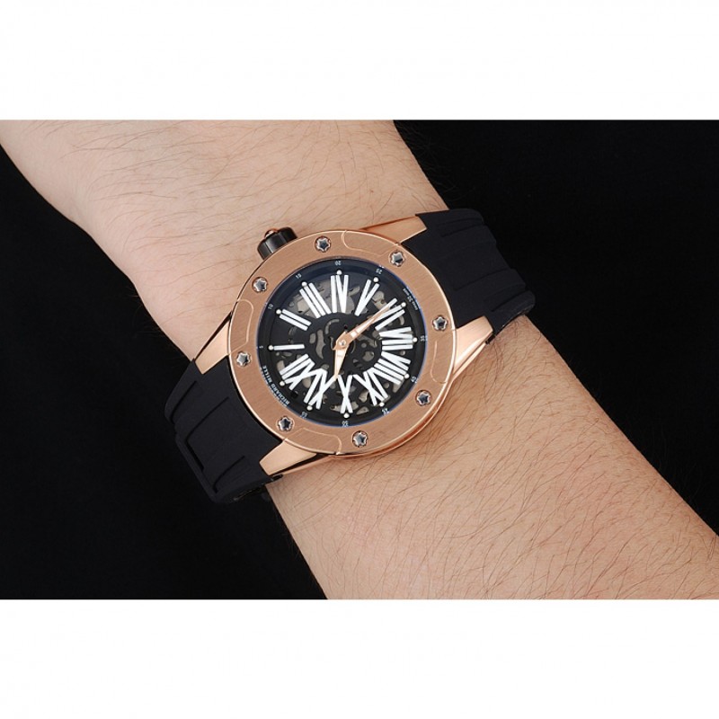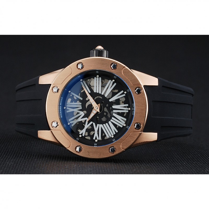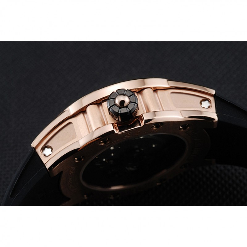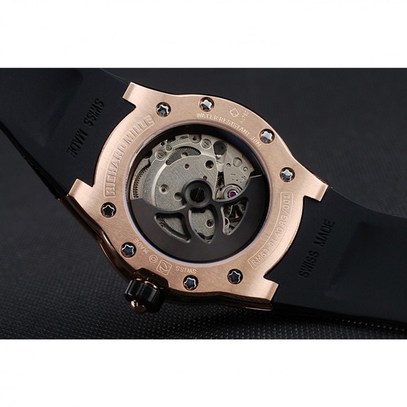 Retour:Richard Mille gravé 18k or rose plaqué vissé en arrière avec la mécanique révélant transparente centre