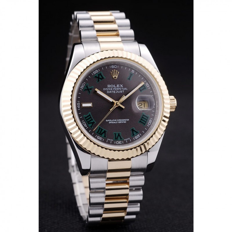 Bracelet:brossé en acier inoxydable et un lien en or jaune bracelet avec logo Rolex fermoir caché