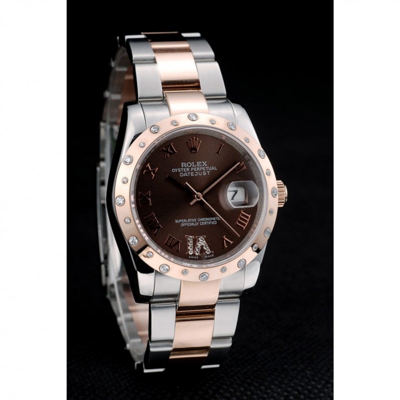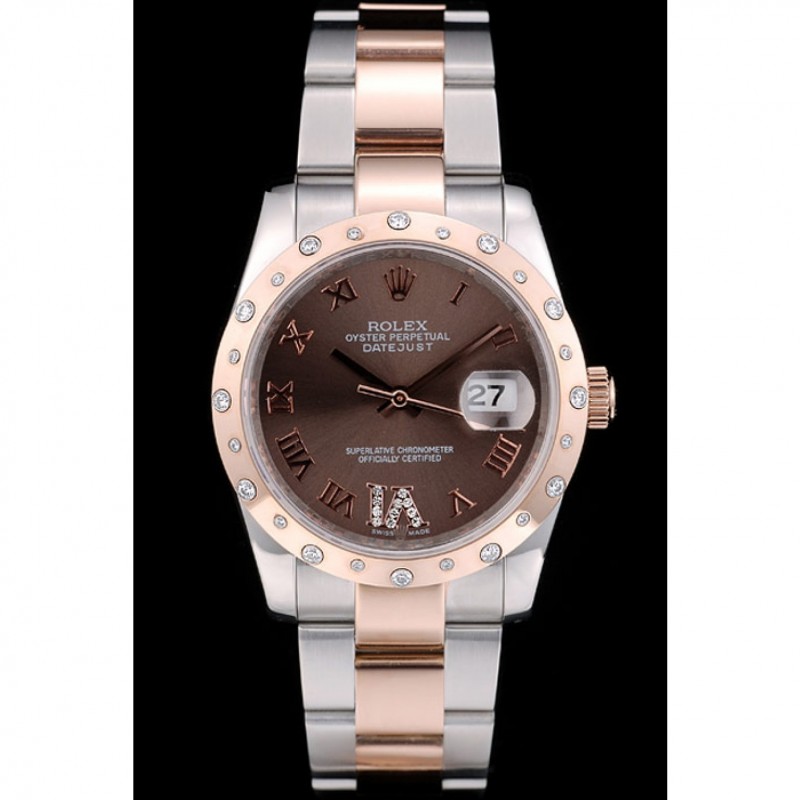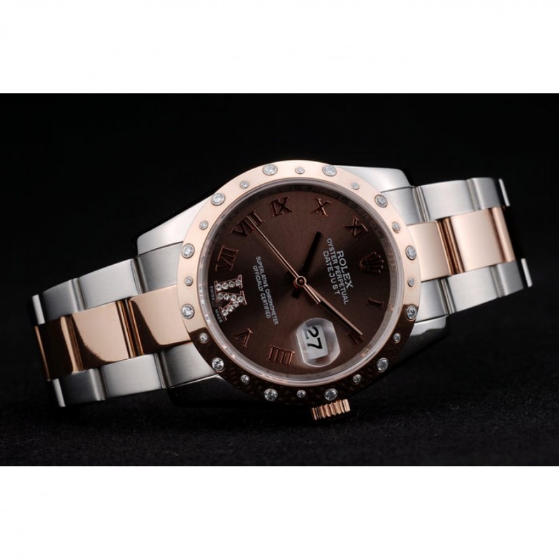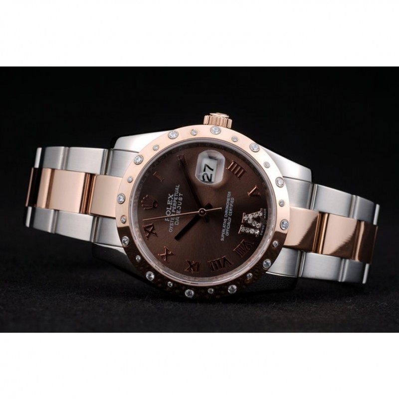 Rolex Datejust de cas en acier inoxydable brossé cadran brun diamant plaqué 41994