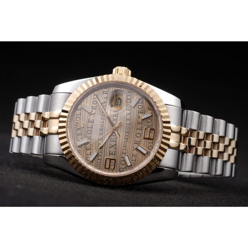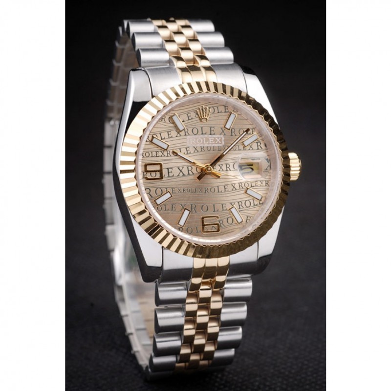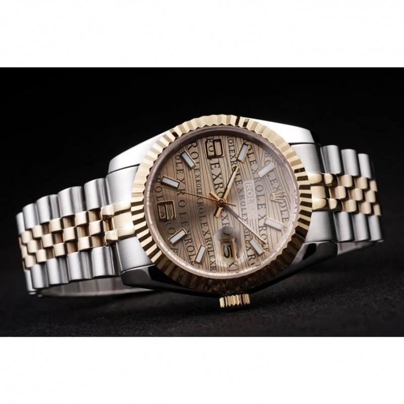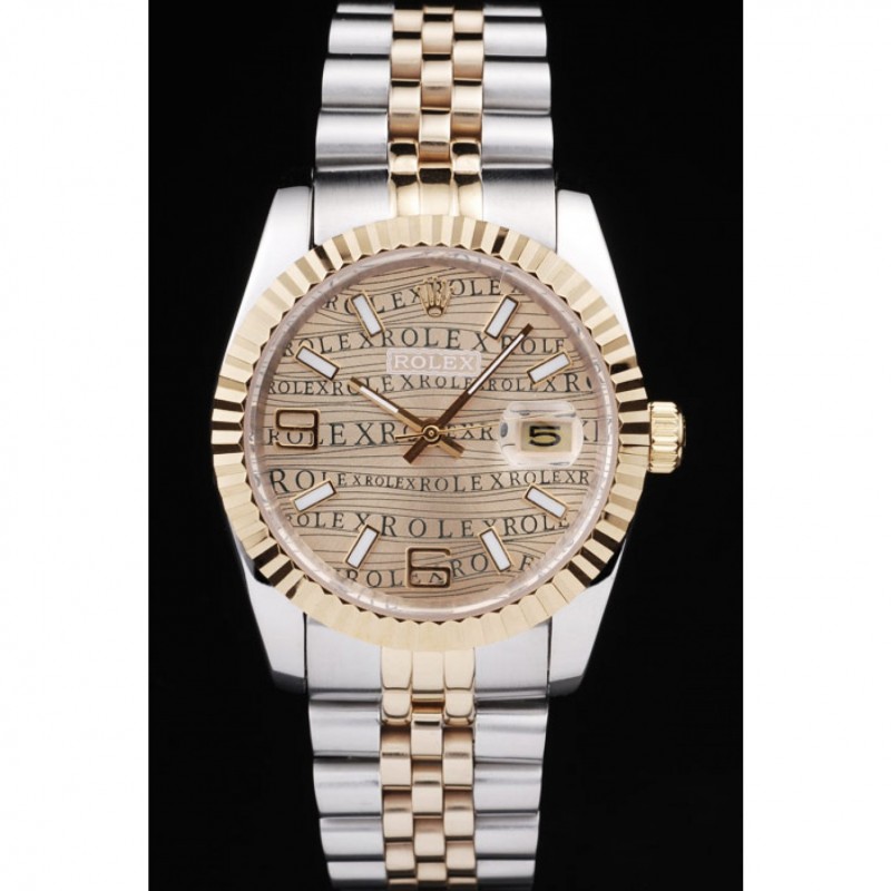 Bracelet:Deux lien tonifiée bracelet en acier inoxydable brossé et or jaune 18 carats plaqué acier Rolex gravé fermoir caché affichant le logo Rolex