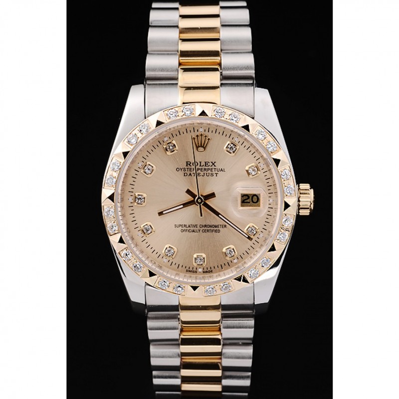 Bezel:sertie de diamants 18k lunette en or jaune avec pointes de flèches noires marquant les heures