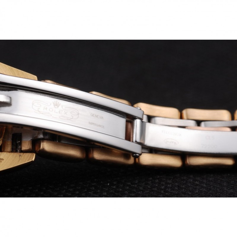 Bracelet:Deux bracelet lien fantaisie tonique en or rose 18-acier inoxydable plaqué or et acier inoxydable poli avec gravure Rolex fermoir caché affichant le logo Rolex