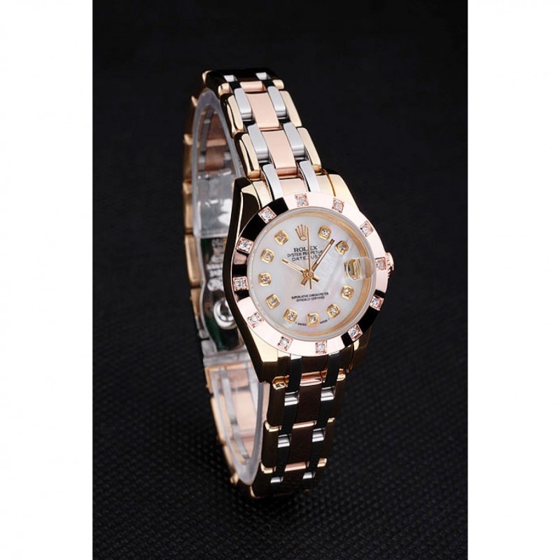 Bezel:18k or Rose- plaqué lunette en acier inoxydable avec des marqueurs d’une heure clouté cristal