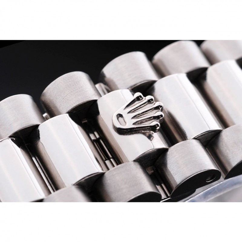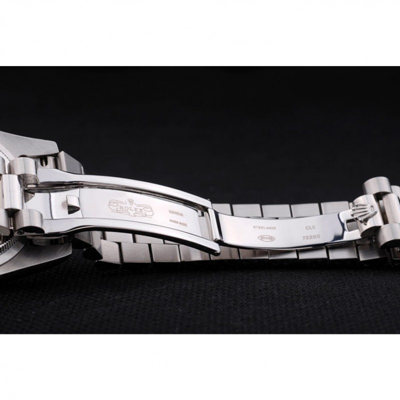 bracelet:bracelet en acier inoxydable brossé et poli avec gravure Rolex caché fermoir affichant le logo Rolex