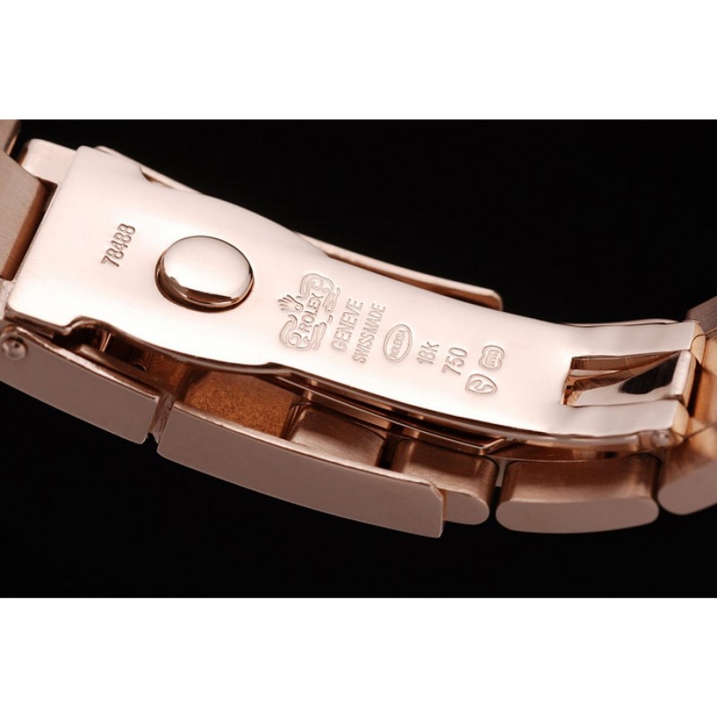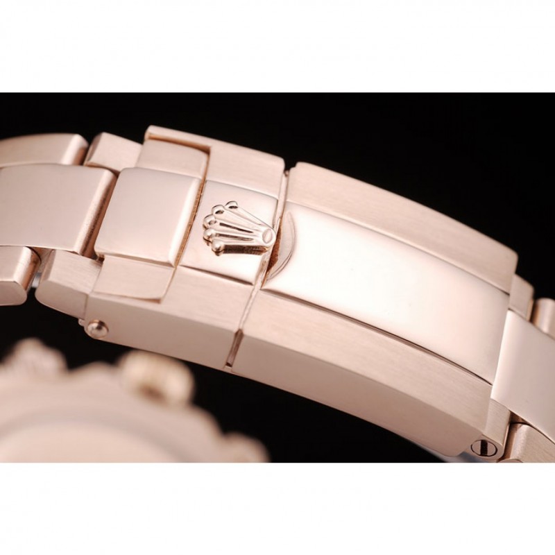 Couronne:18k couronne cutwork or rose avec le logo Rolex et une couronne cutwork plus petit de chaque côté de celui-ci