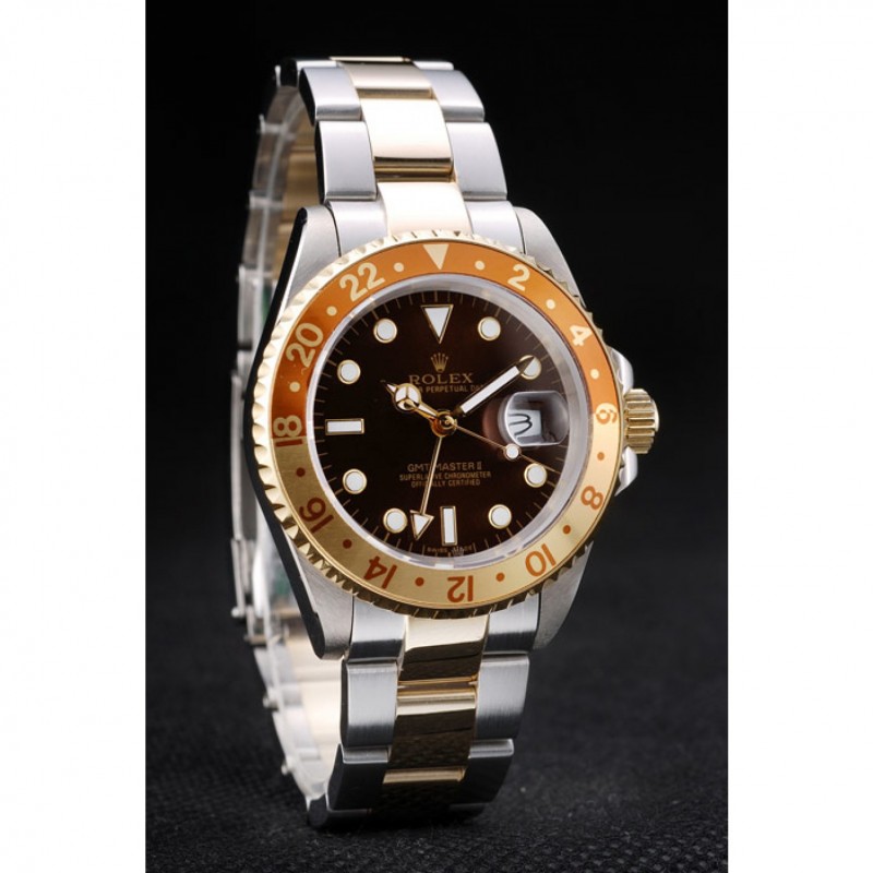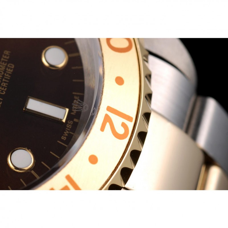 Bezel:L’or et lunette orange richelieu en céramique avec un marqueur de 24 heures en chiffres arabes