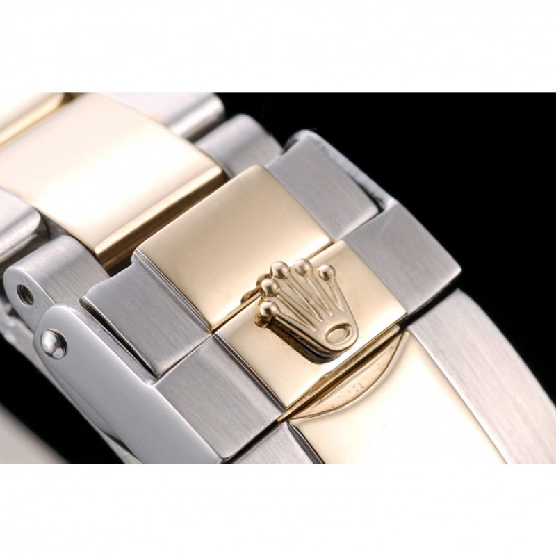 Bracelet:plaqué or jaune et brossé bracelet à maillons en acier inoxydable avec boucle déployante gravé avec le logo Rolex sur