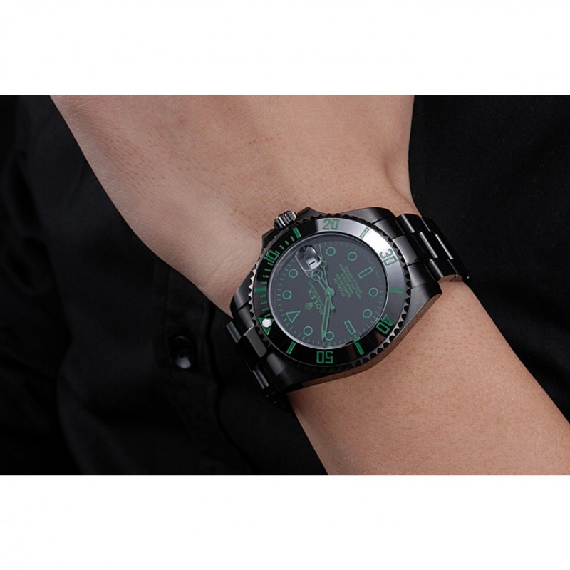 lunette:lunette cutwork Ion-plaqué avec des marqueurs minute verts en céramique haut
