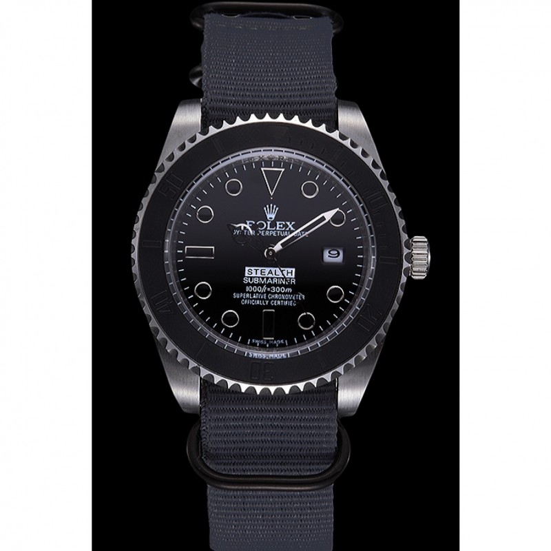 Bracelet:bracelet en nylon noir avec cutwork logo Rolex fermoir crochet-boucle-plaqué ion