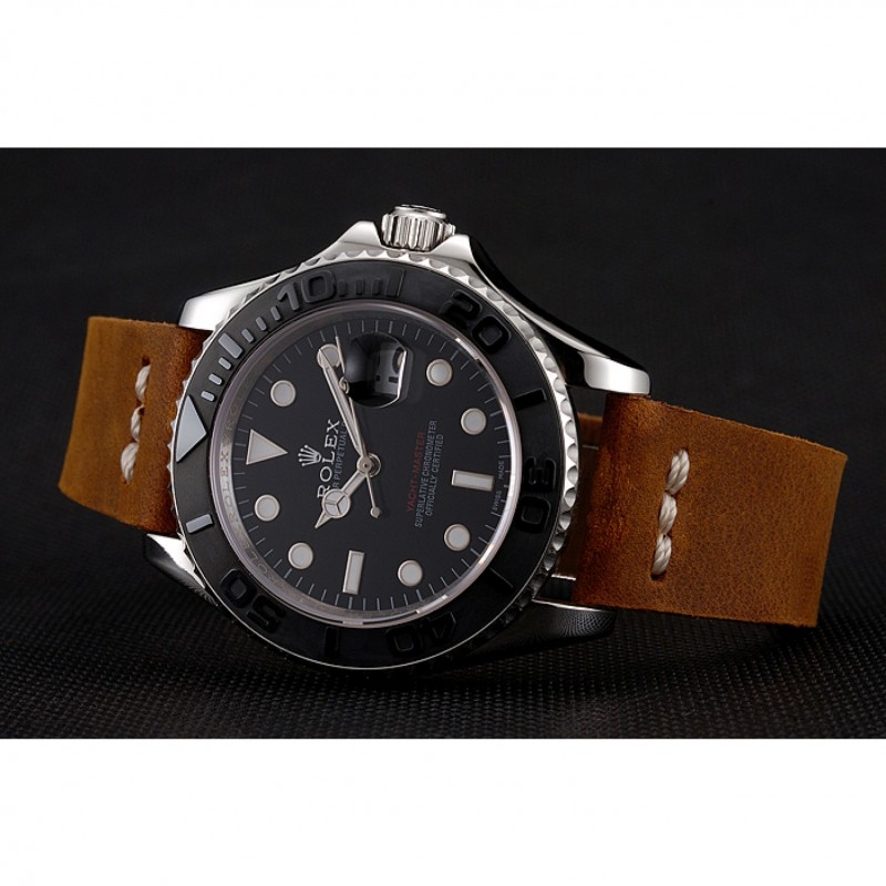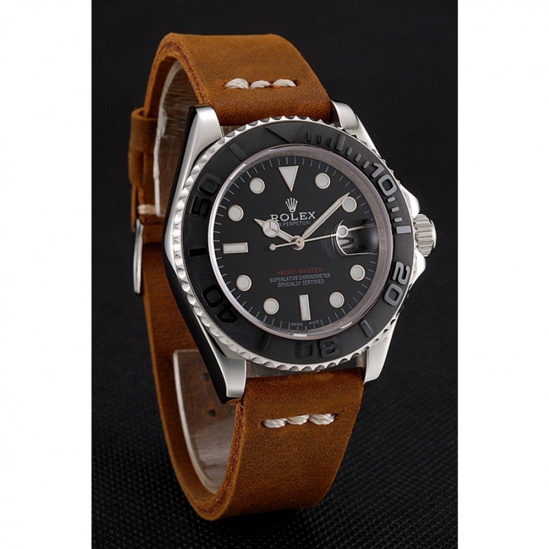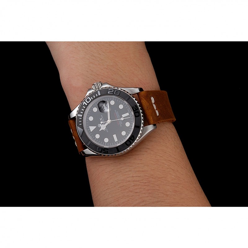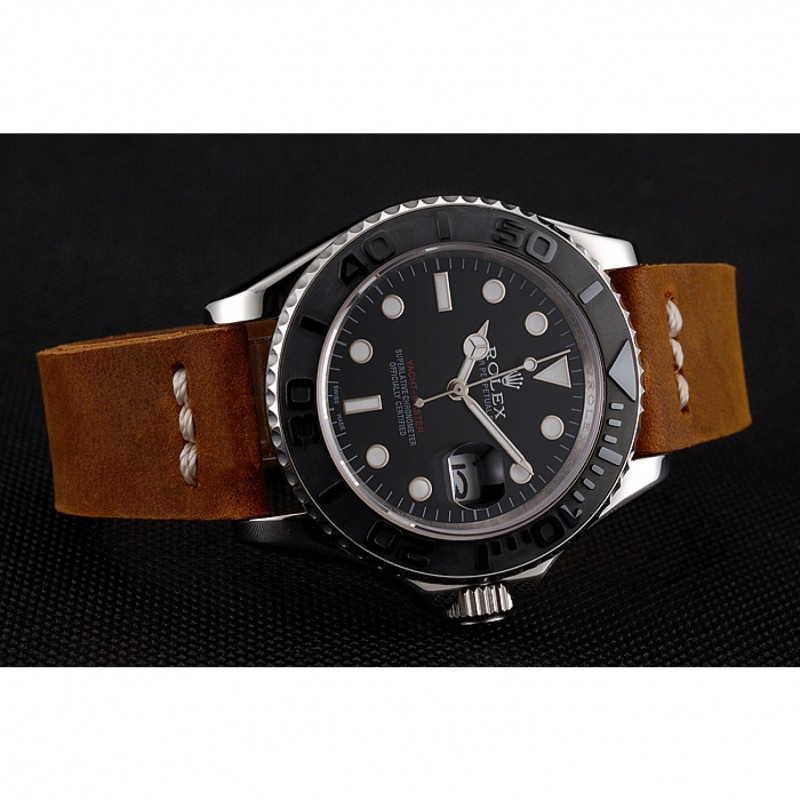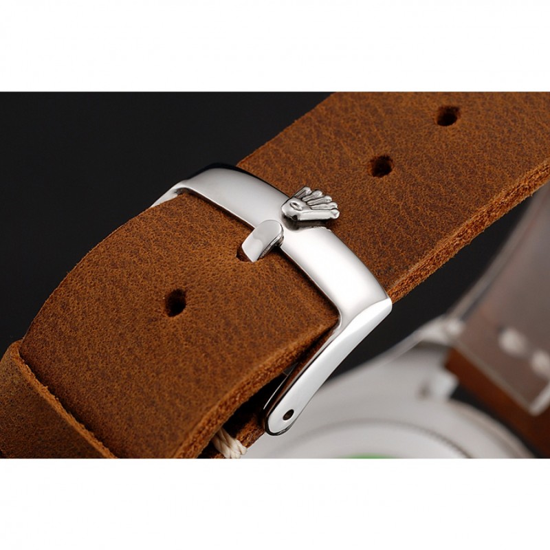 Bracelet:logo et la chaleur Rolex gaufrés bracelet en cuir marron avec Rolex logo gravé en acier inoxydable poli fermoir crochet boucle