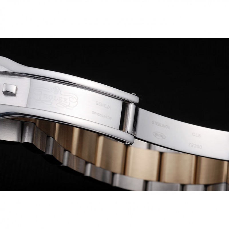 bracelet:en acier inoxydable brossé et bracelet à maillons or rose avec gravure Rolex à l’intérieur du fermoir de déploiement et un logo Rolex sur