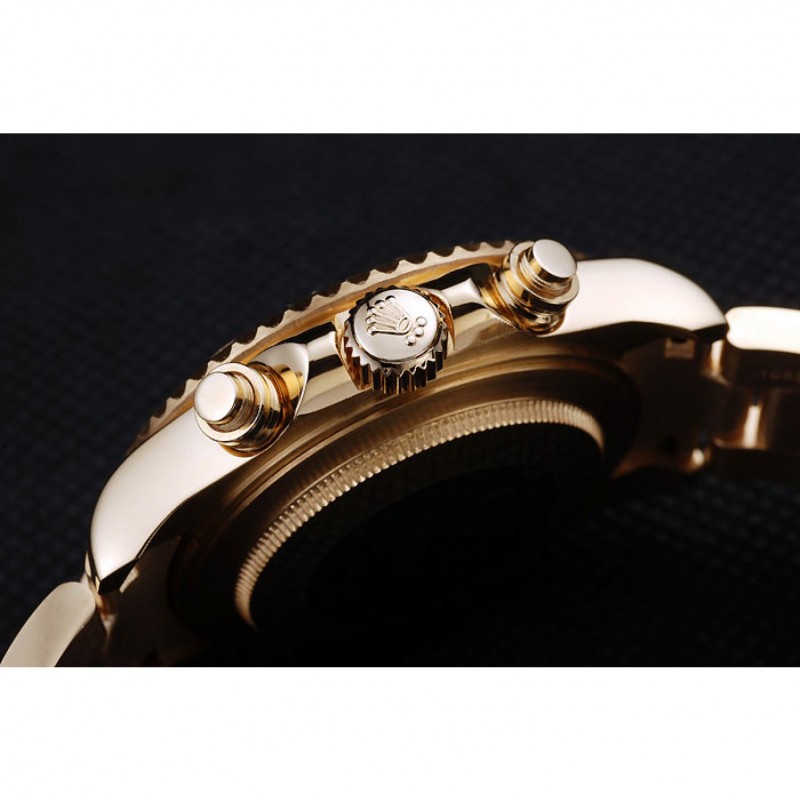 Couronne: logo Rolex gravé or jaune 18 carats plaqué couronne cutwork avec une couronne bouton-poussoir cutwork de chaque côté de celui-ci