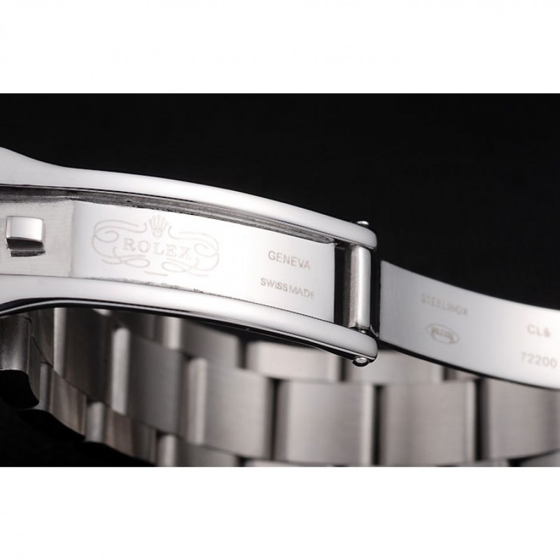 bracelet:bracelet à maillons en acier inoxydable brossé avec gravure Rolex à l’intérieur du fermoir de déploiement et un logo Rolex sur