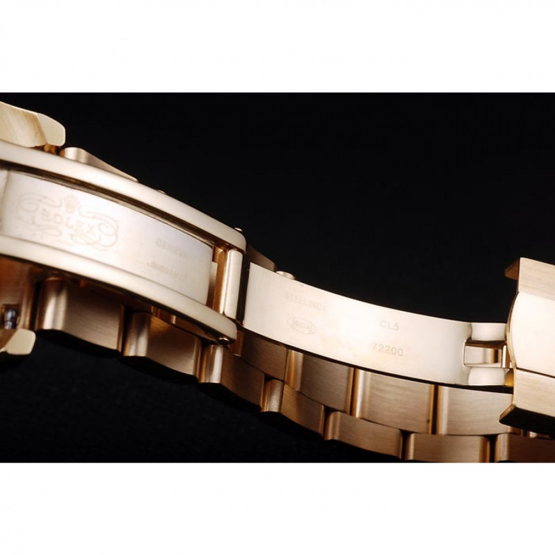 bracelet:bracelet lien or rose avec gravure Rolex à l’intérieur du fermoir de déploiement et un logo Rolex sur