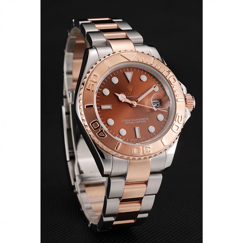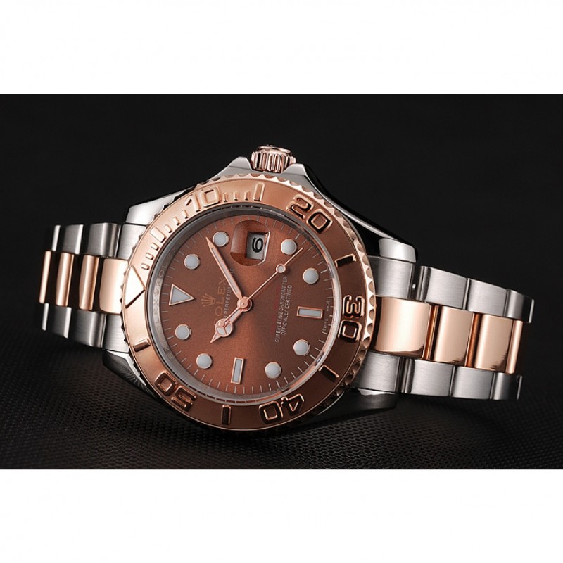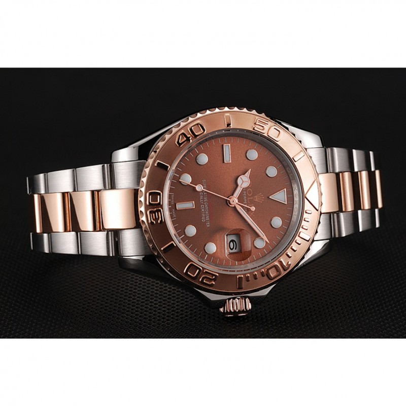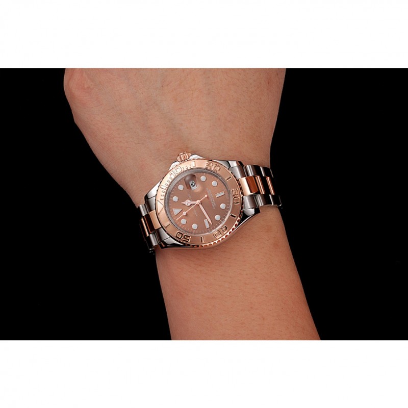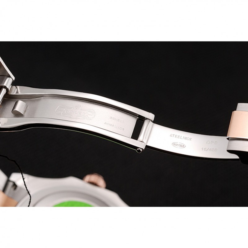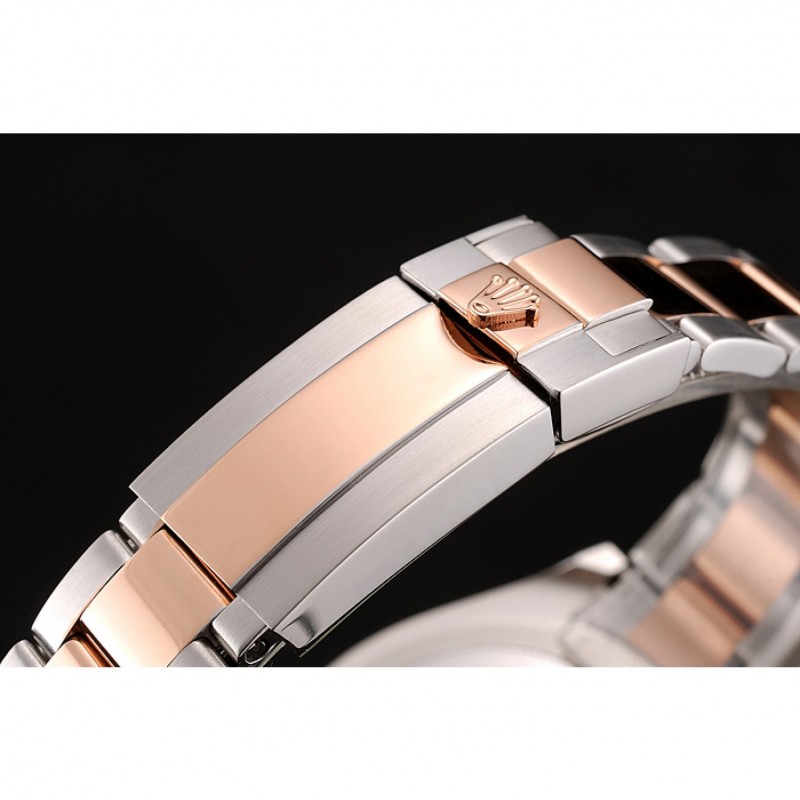 Bracelet:18k or rose plaqué et brossés bracelet à maillons en acier inoxydable avec le logo Rolex sculpté boucle déployante